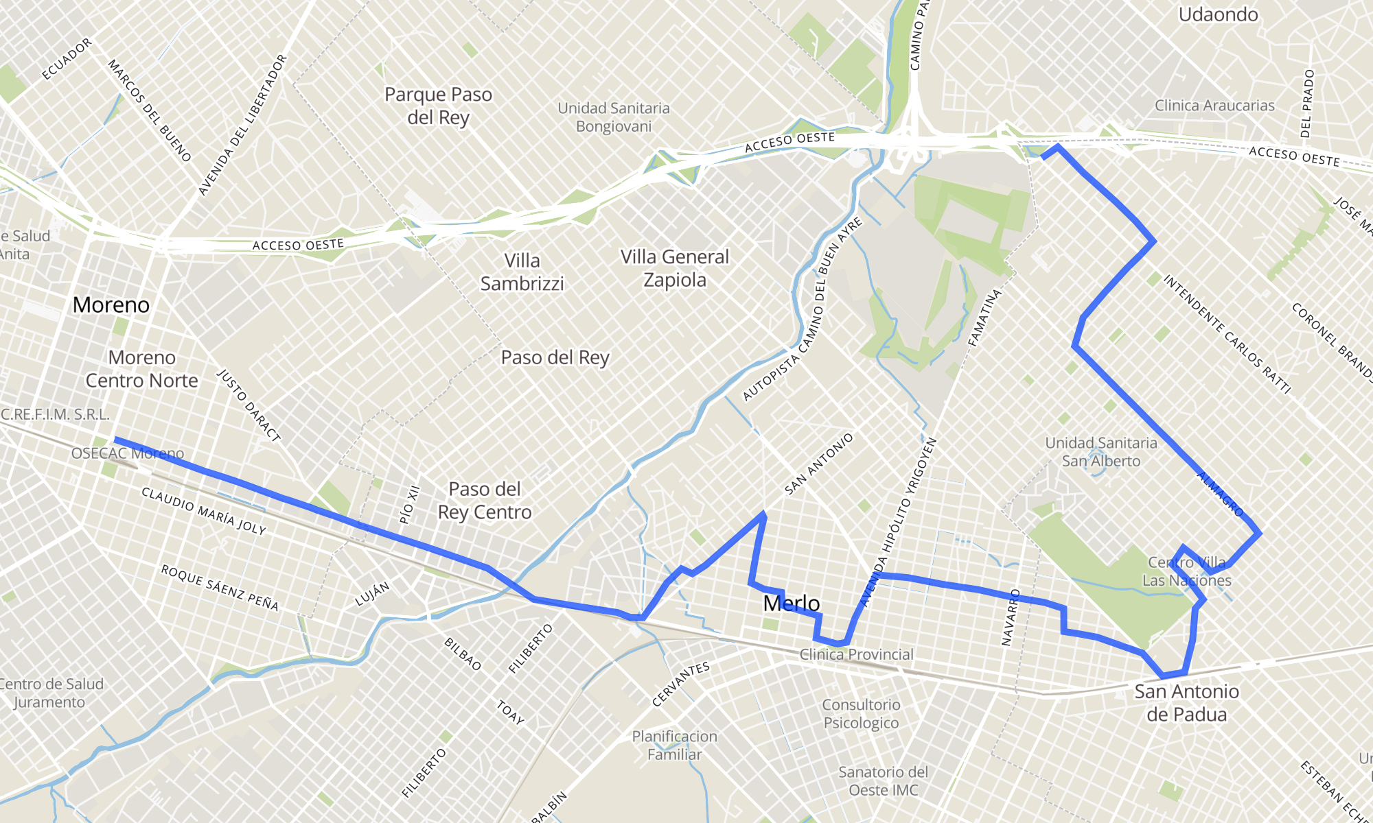 Sentido: INTENDENTE CARLOS RATTI 4455-4499 ‎→ Estación Moreno (93 paradas)
