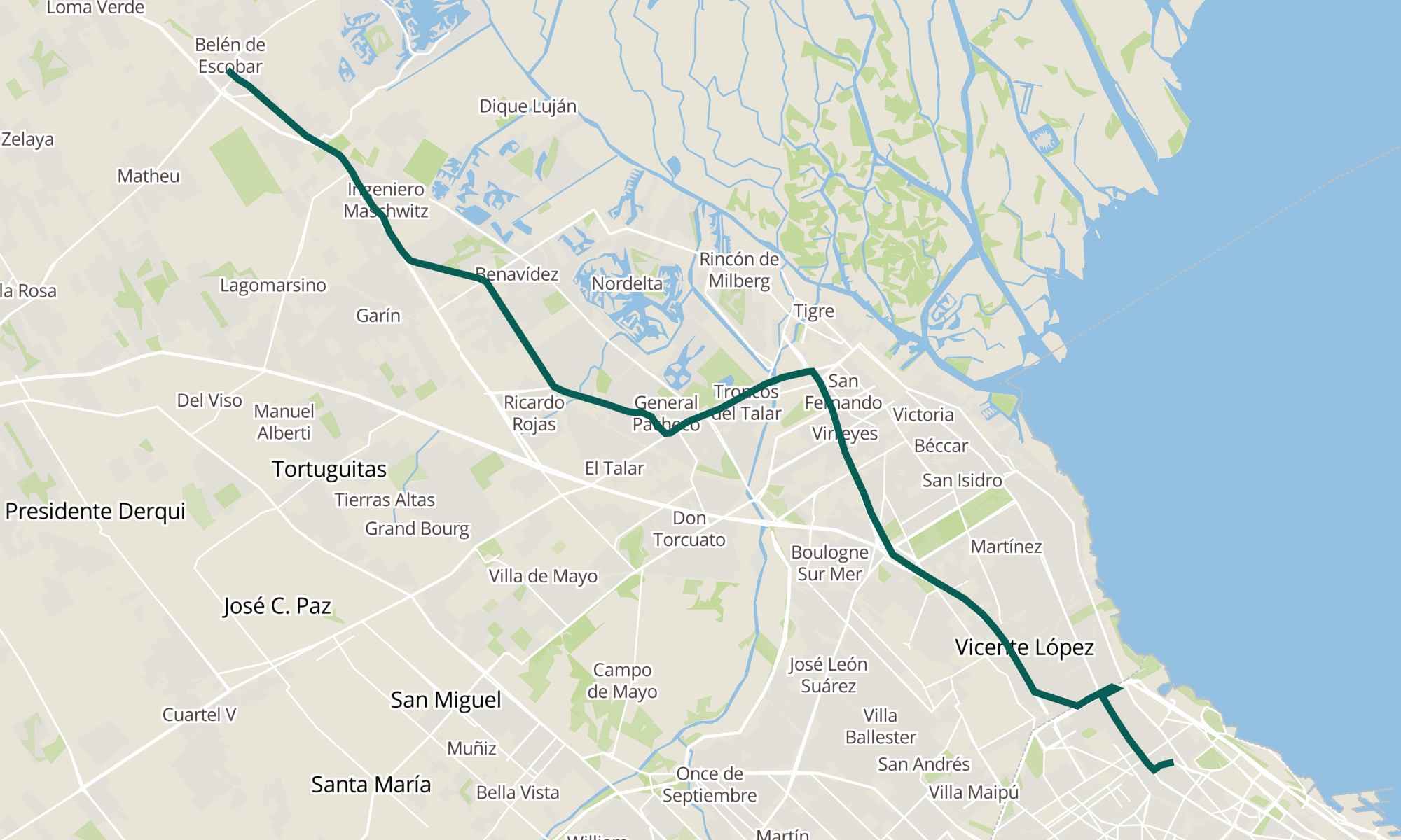 | Estación Belgrano C (29 - 60) | Terminal De Ómnibus De Escobar (60 - Barrancas De Belgrano) |