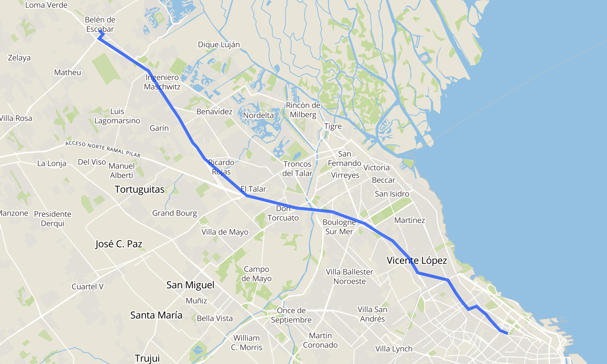 Recorrido de la línea 60: Plaza Italia - Escobar (Rápido)