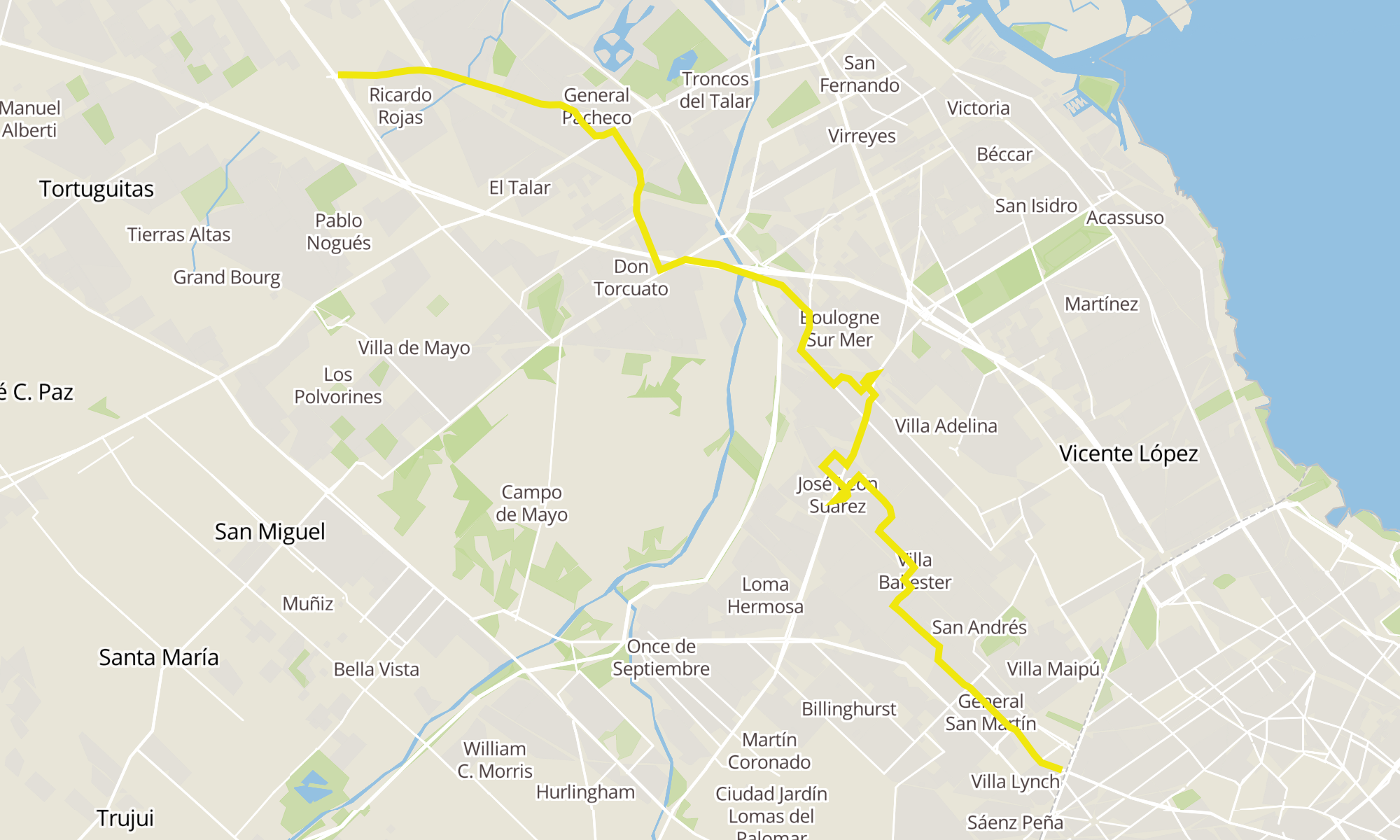 Sentido: General Paz (78 - 87 - 204a) ‎→ Colectora Este Y Avenida Henry Ford (128 paradas)