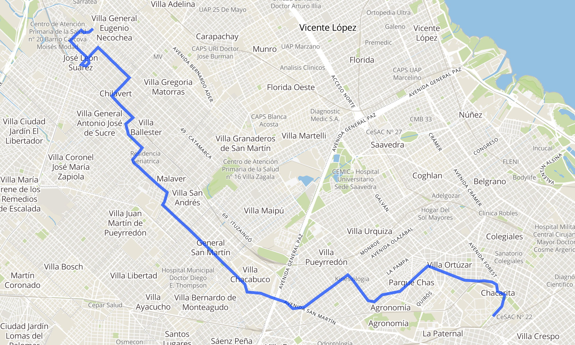 Recorrido de la línea 87: José León Suárez - Chacarita