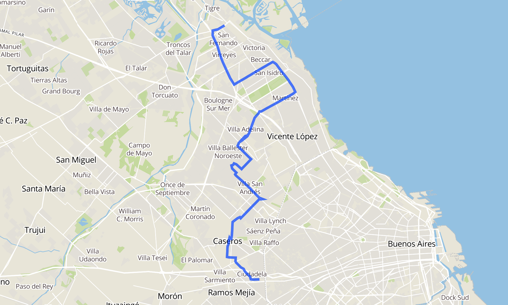 Sentido: Estación Carupá (203 - 343 - 365) ‎→ Gazeta De Buenos Aires, 3504 (159 paradas)