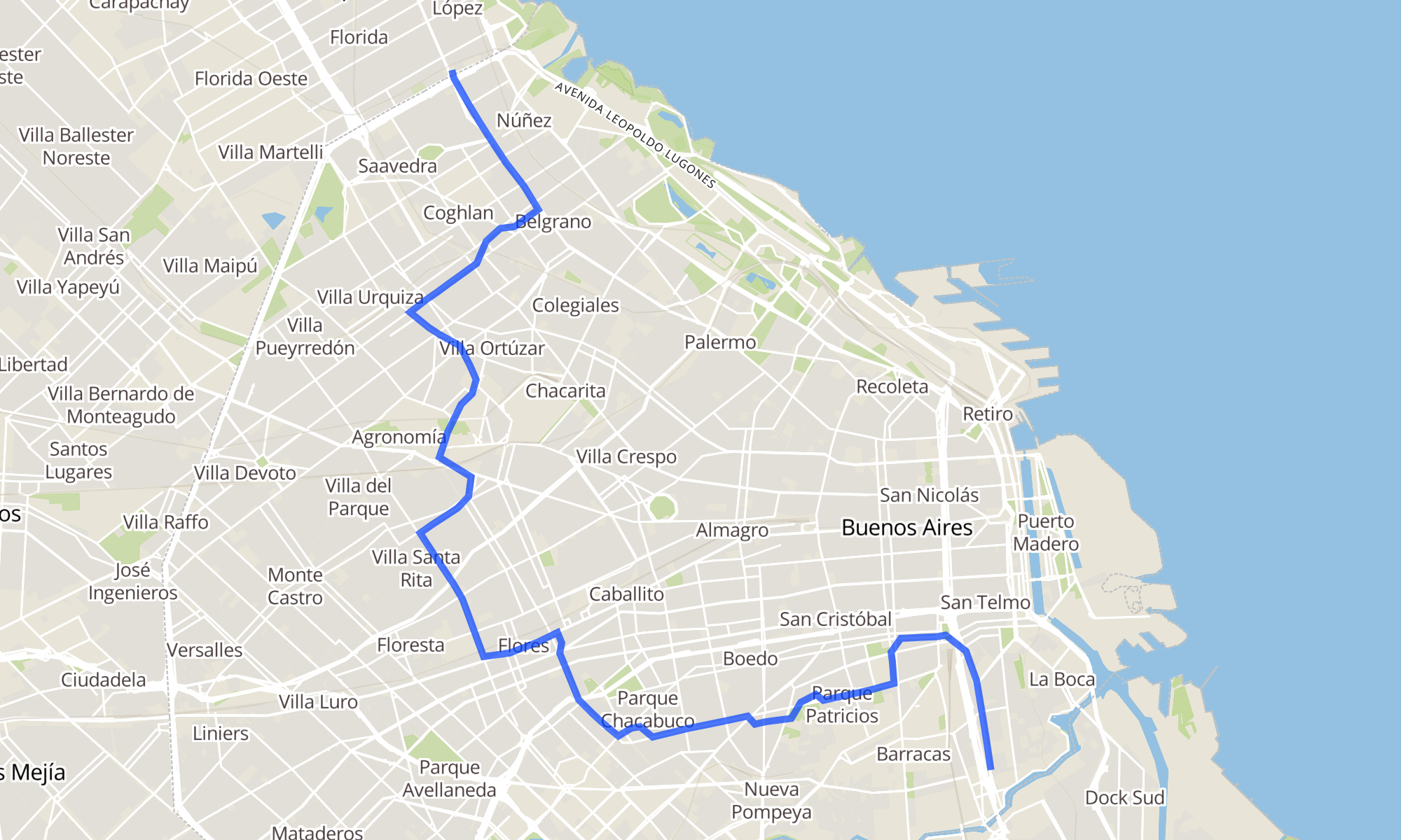 | Avenida Montes De Oca Y Avenida Iriarte (22 - 133) | Centro De Trasbordo Pte. Saavedra (Llegadas) |