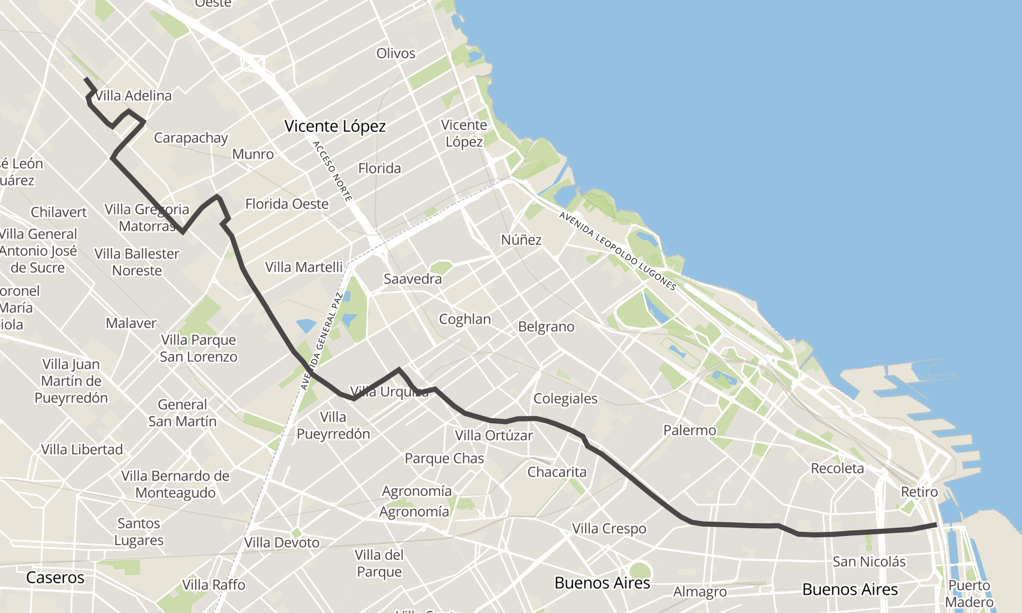 Sentido: Terminal Madero (140) ‎→ Juan A. Mazza, 2302 (93 paradas)