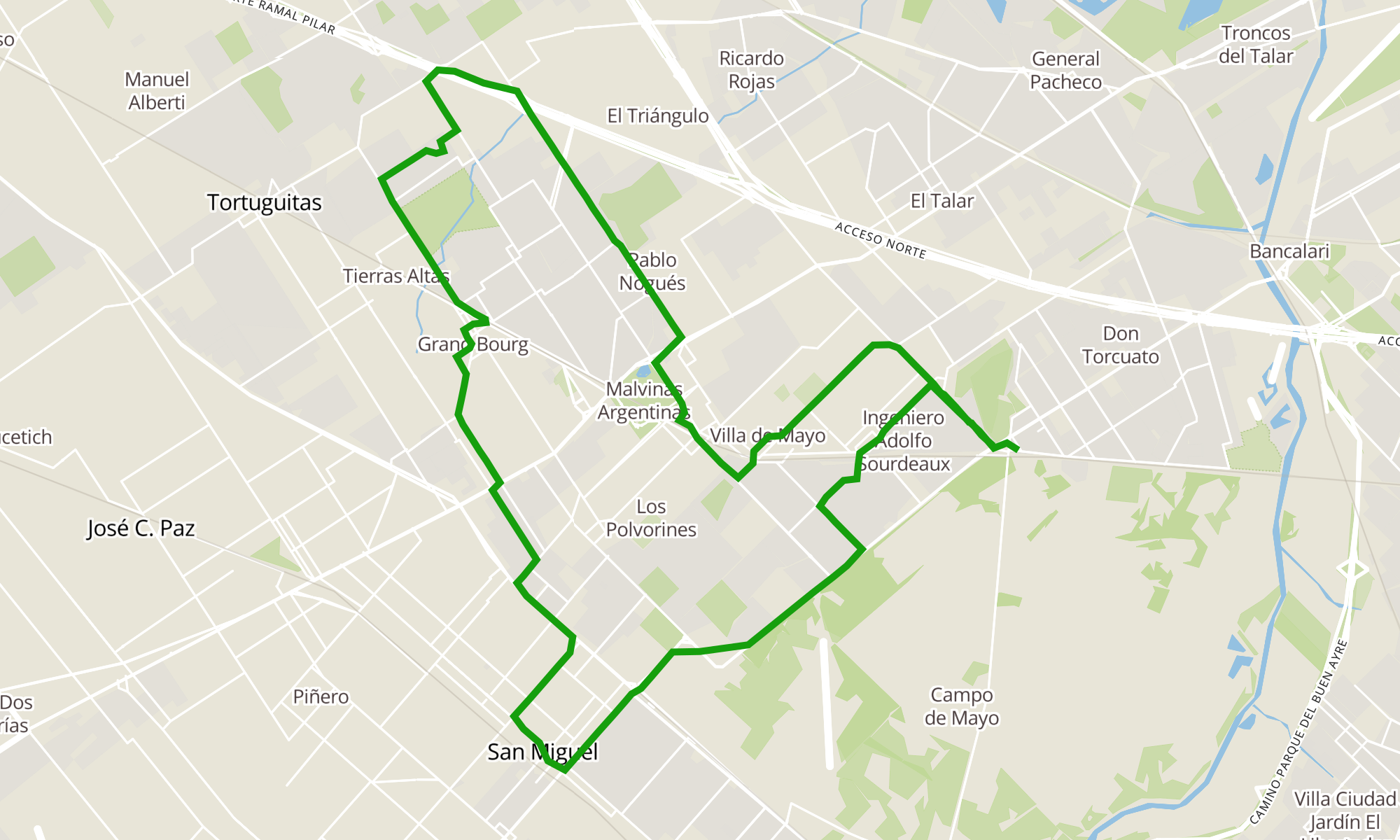 Recorrido de la línea 341: Est. Don Torcuato - Est. Los Polvorines - Fonavi - Est. Grand Bourg - San Miguel