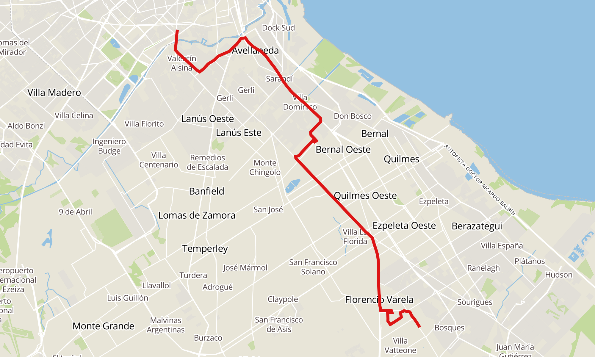 Sentido: Av. Guillermo Hudson Y Río Diamante ‎→ Lynch, 3968 (130 paradas)