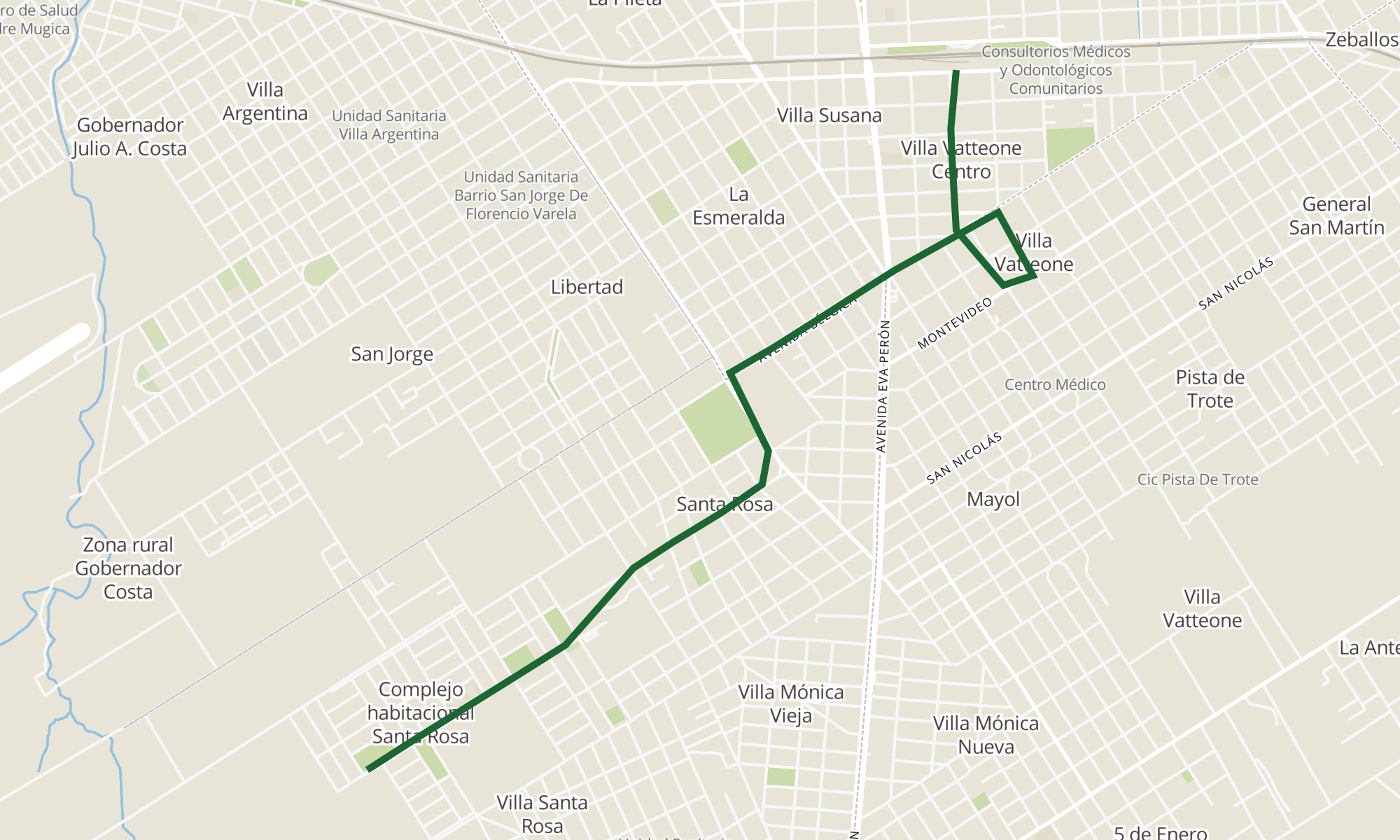 | Estación Florencio Varela (266 - 383 - 501 - 504) | Bruselas y Calle 647 (Fin del recorrido 500 - 505) |