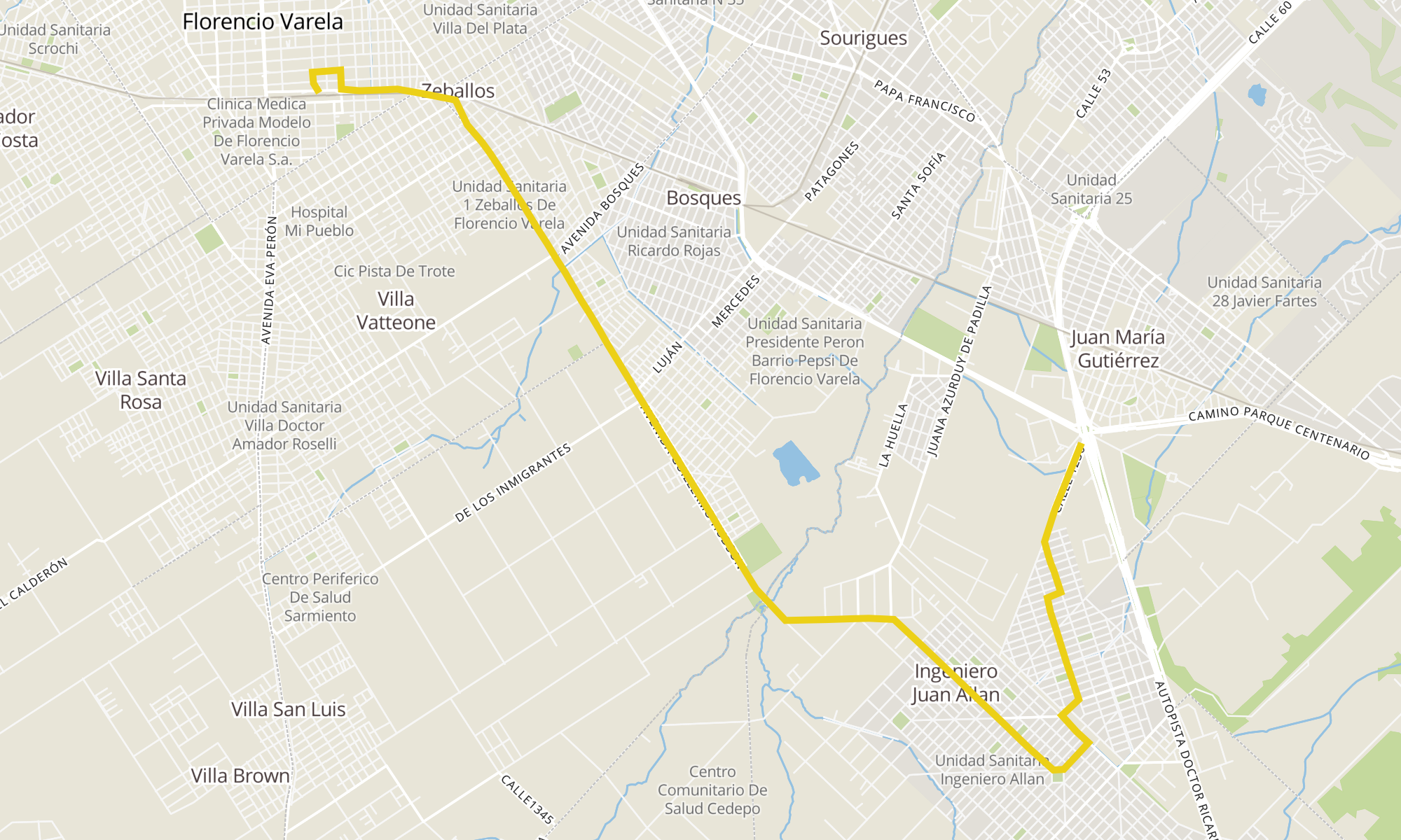Sentido: Calle 1236 1248 ‎→ 324 - (2) Rotonda De Alpargatas / El Pato (79 paradas)