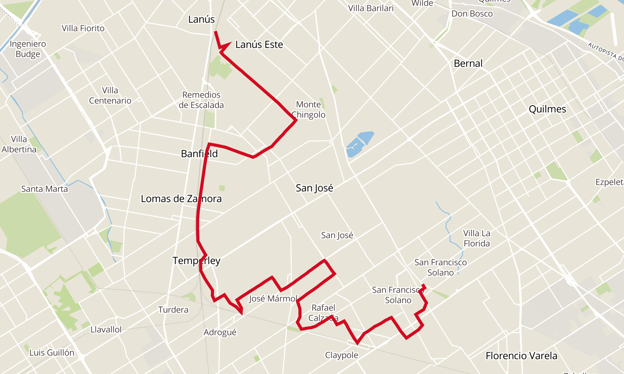 Sentido: Centro De Transbordo Lanus (278) ‎→ Estación Solano (148 I - 323) (167 paradas)