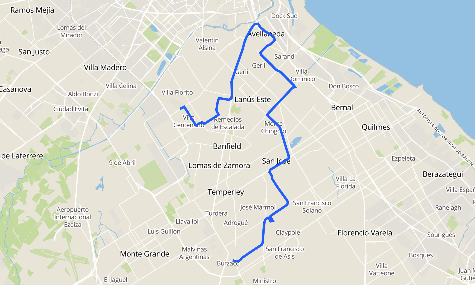 Sentido: Estación Burzaco (271) ‎→ Ejército De Los Andes Y A. Filardi (171 paradas)