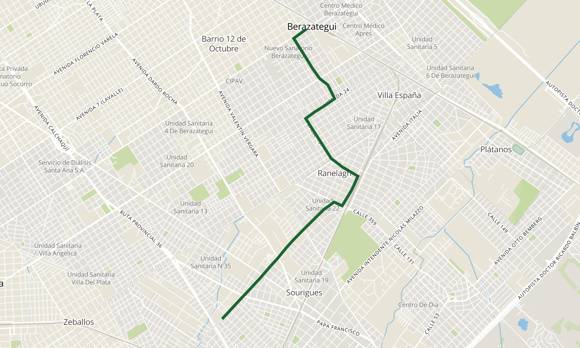 Recorrido de la línea 300AA: 183 - Bosques - Berazategui
