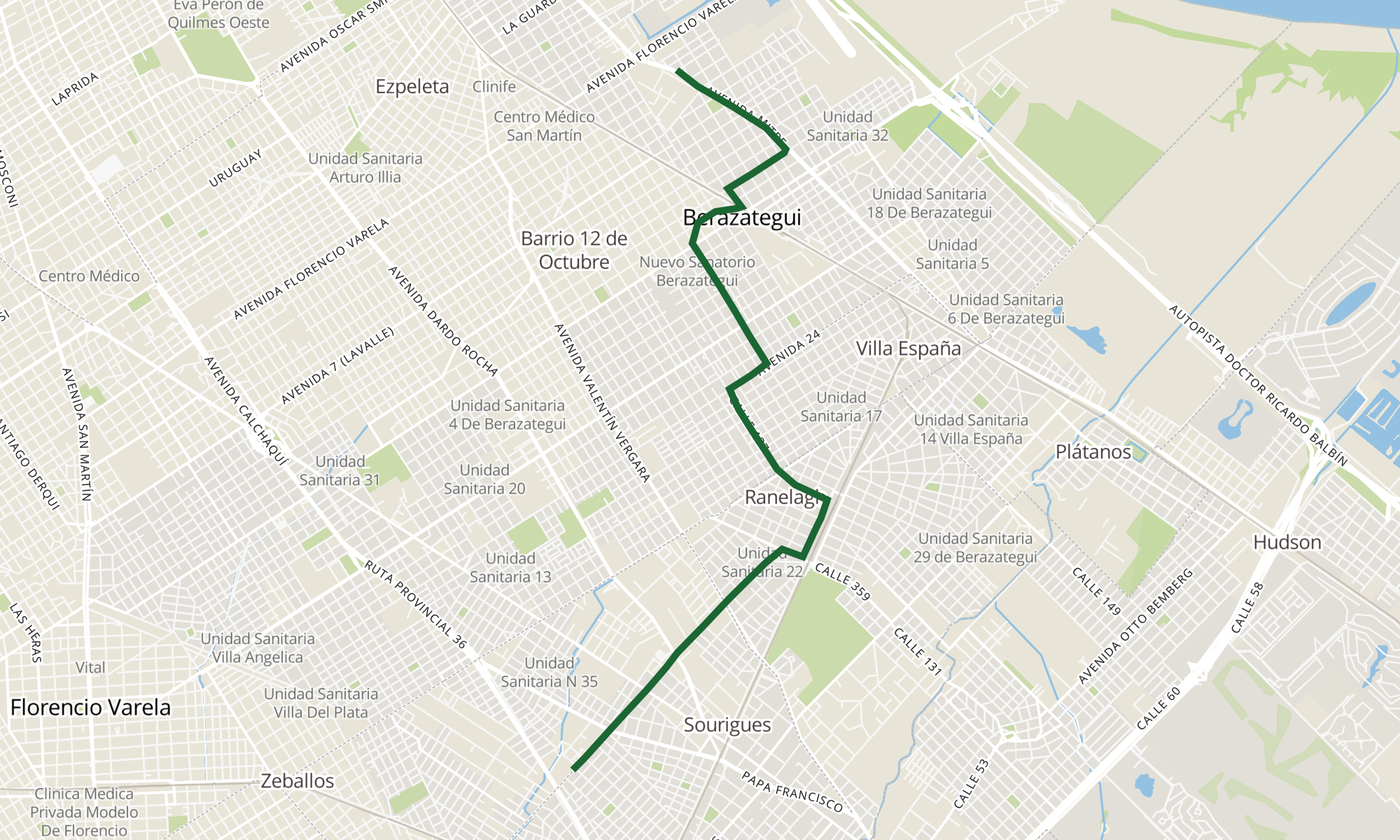 Recorrido de la línea 300AA: 190 - Ducilo - Bosques