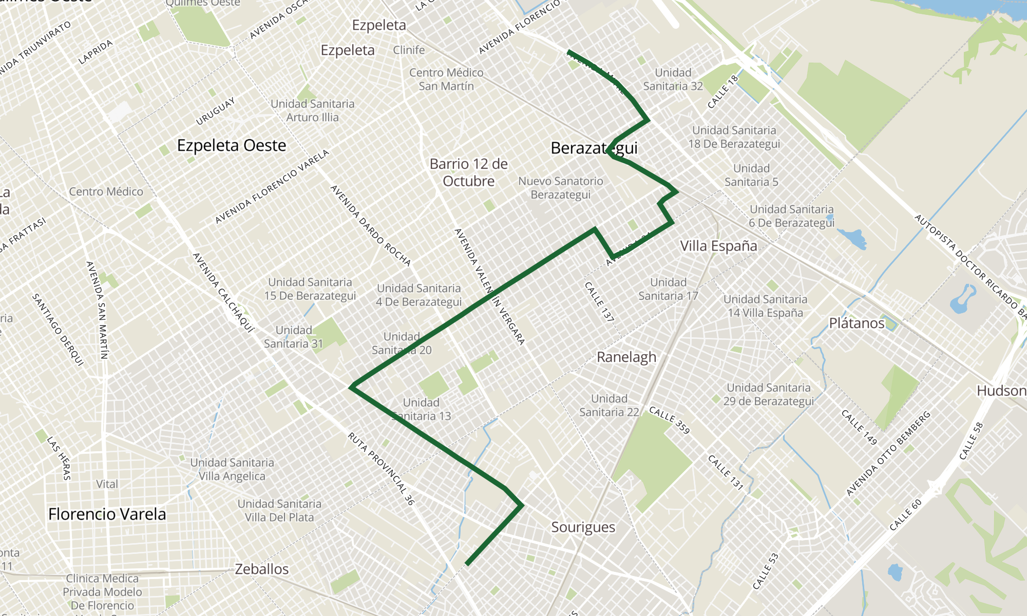 Recorrido de la línea 300B1: 187 - Bosques - Ducilo