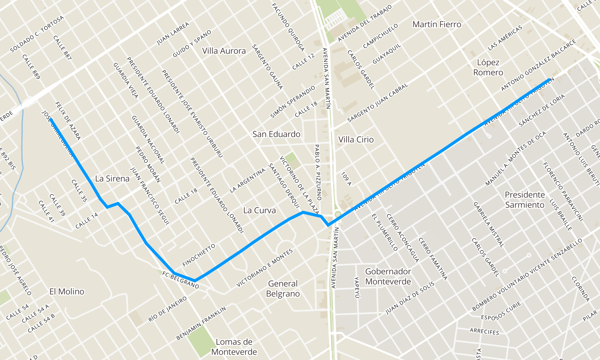 Recorrido de la línea 354: Cruce Varela - La Sirena (Garage)