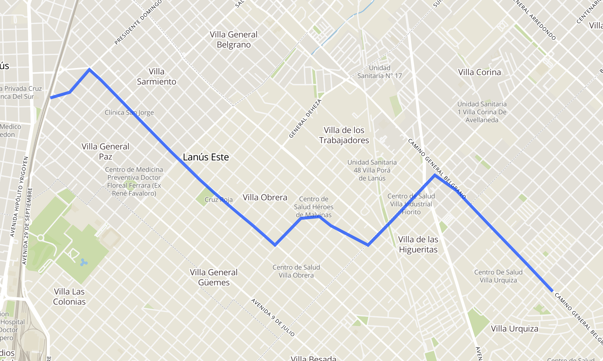 Recorrido de la línea 527: B- Est. Lanús - Camino Gral. Belgrano Y Cadorna