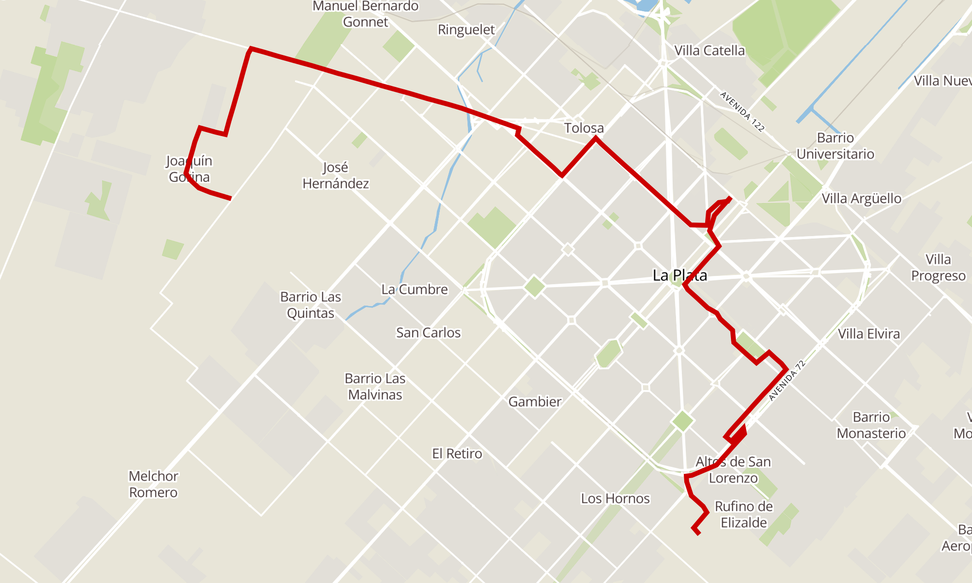 Sentido: Empresa Unión Platense S.R.L. ‎→ Calle 140 Bis Y Calle 501 (100 paradas)