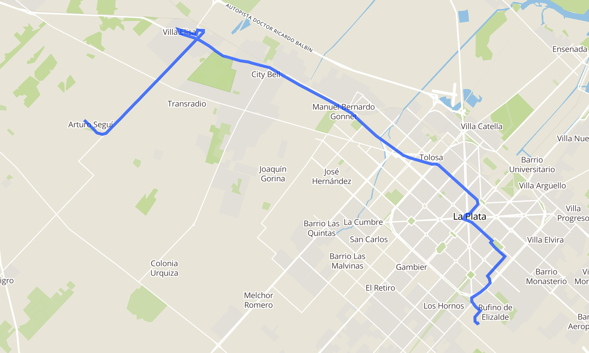 Sentido: Calle 146 Y Calle 409 ‎→ Empresa Unión Platense S.R.L. (Descenso) (114 paradas)