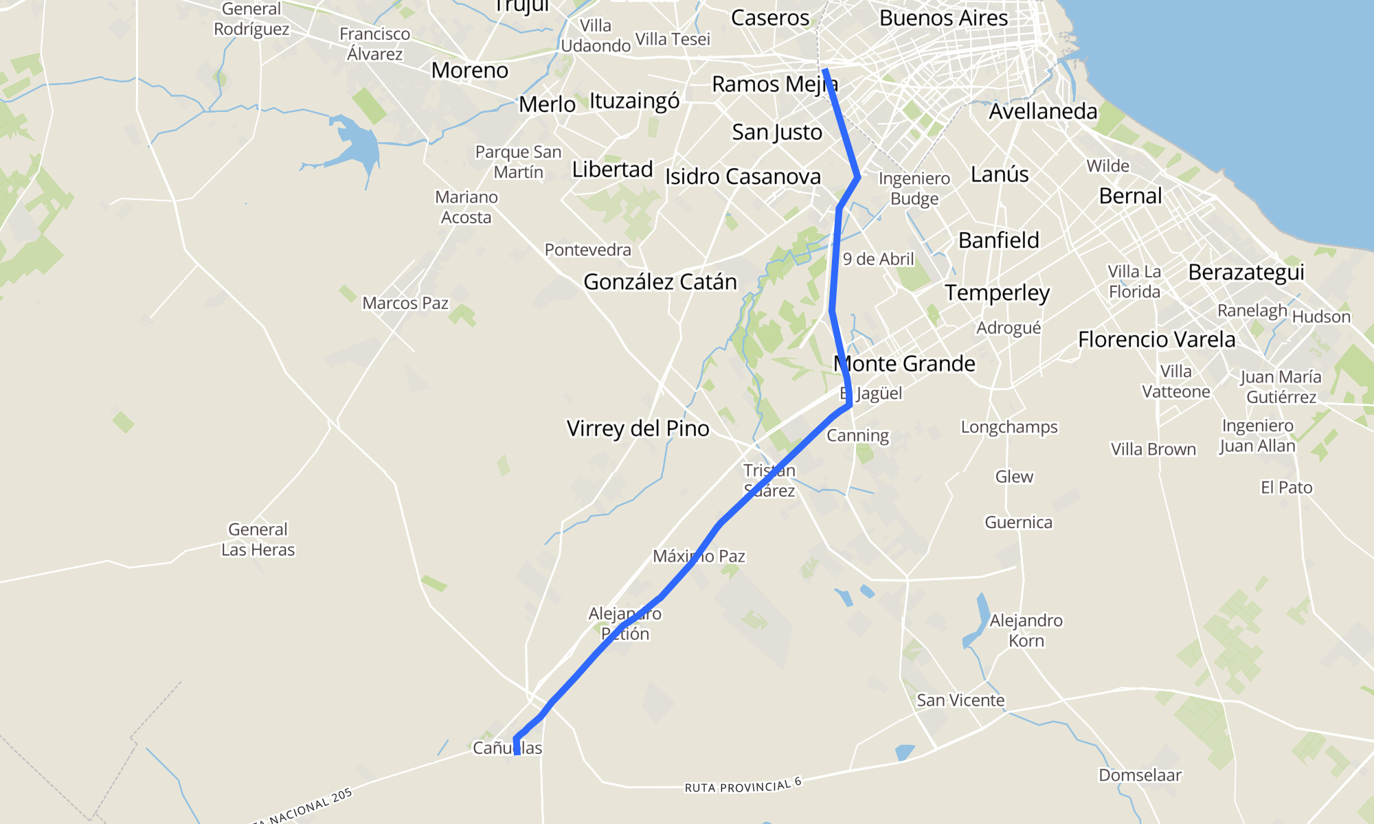 | Centro De Trasbordo Liniers (8 - 47) | Estación Cañuelas (51 - 502) |