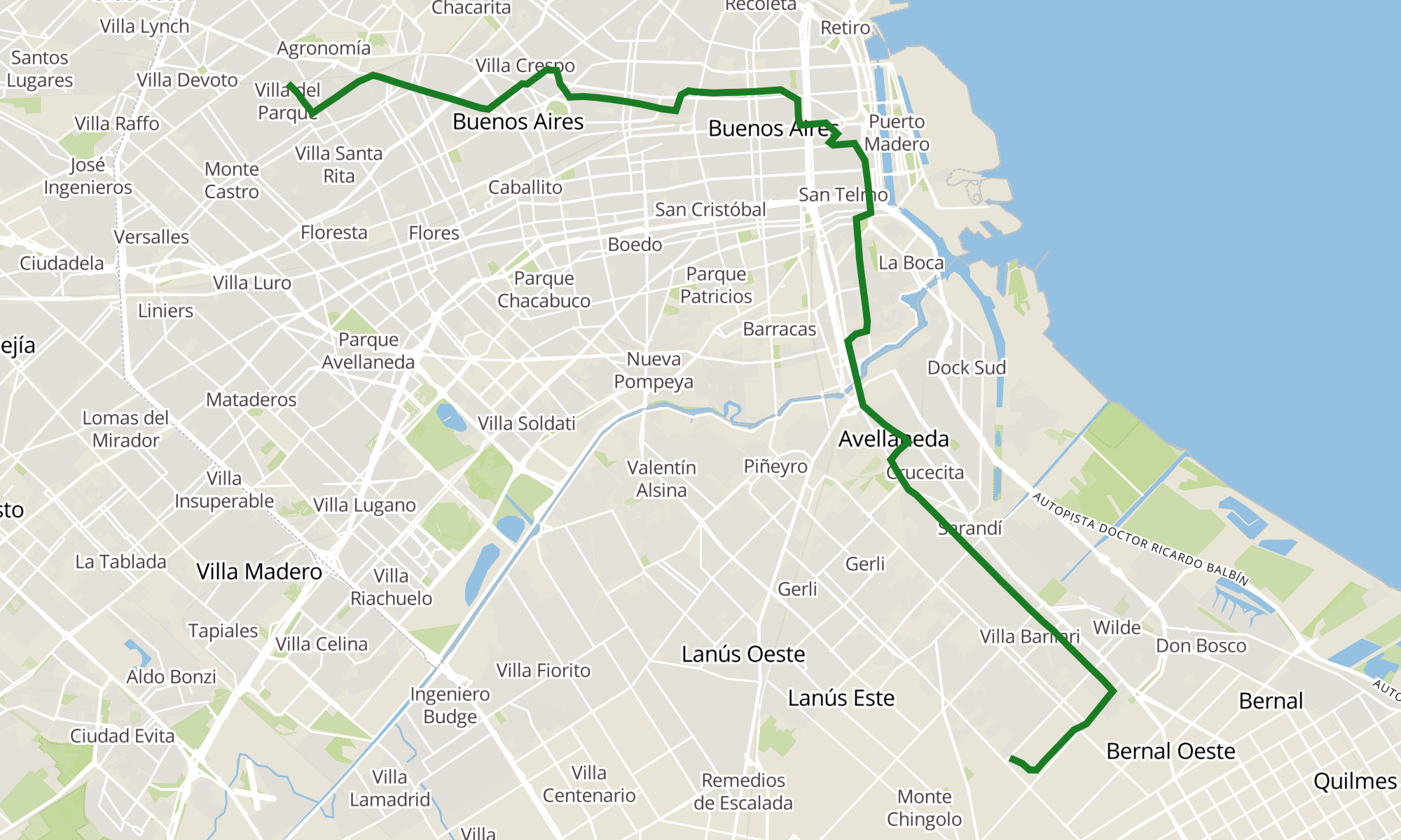 Recorrido de la línea 24: R2 - Wilde - Villa Del Parque (X Lynch)