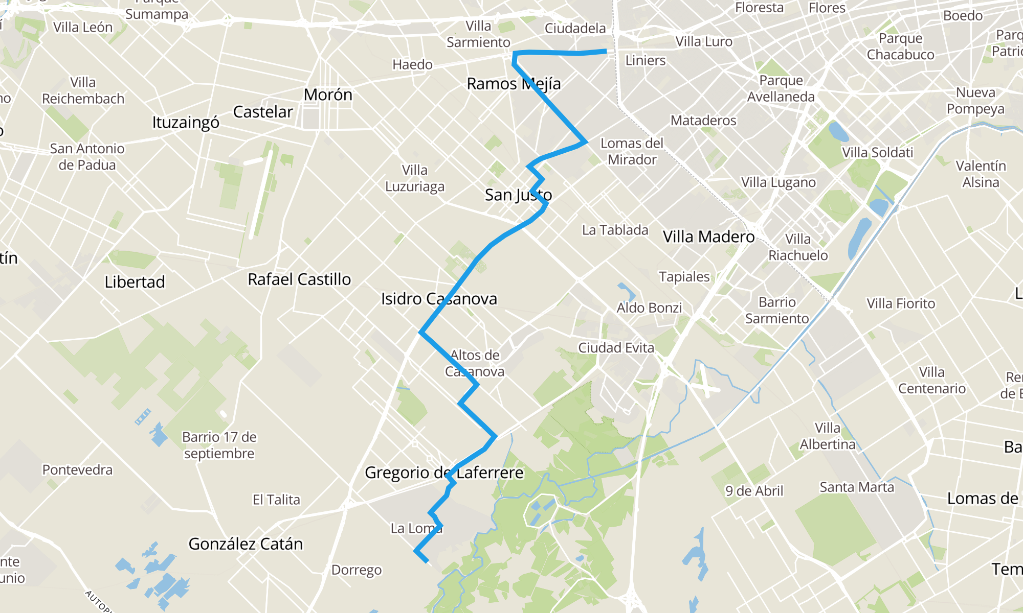Recorrido de la línea 378: Liniers x San Martín