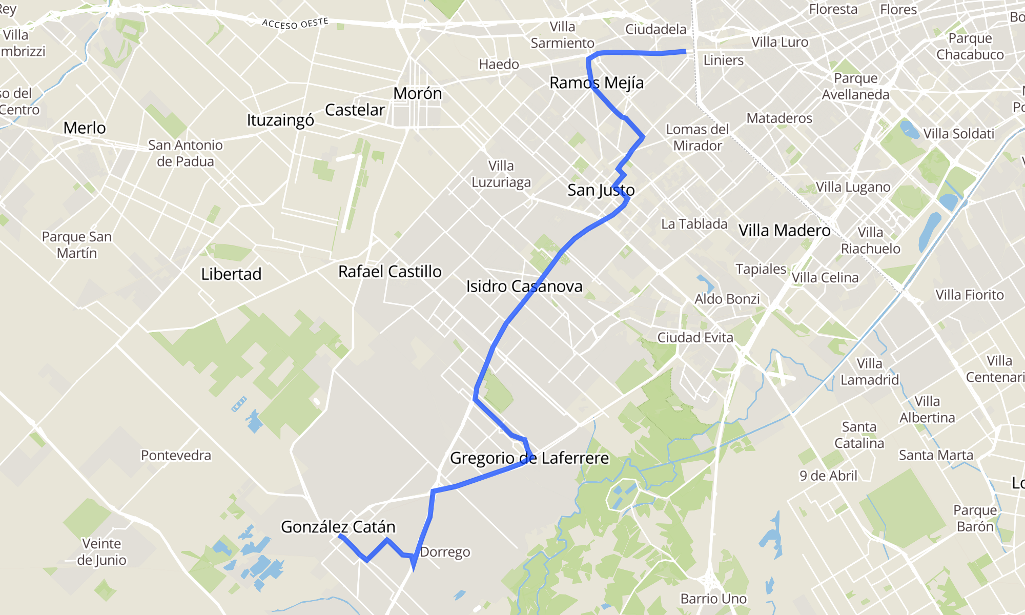 | Estación Catán (218 - 378 - 622) | Terminal Almafuerte (Descenso) |