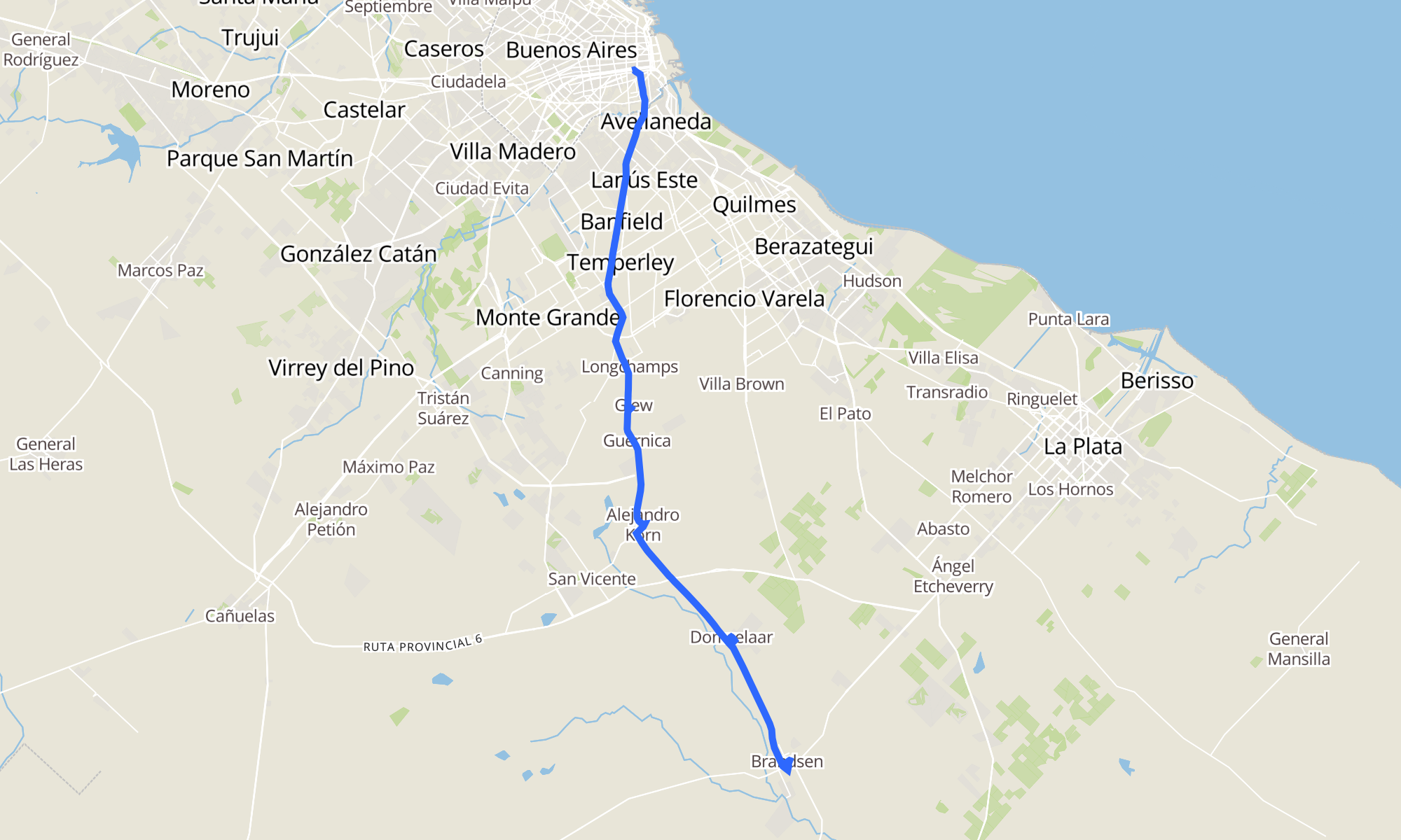 Recorrido de la línea 51: Brandsen - Constitución (X Ruta 210)