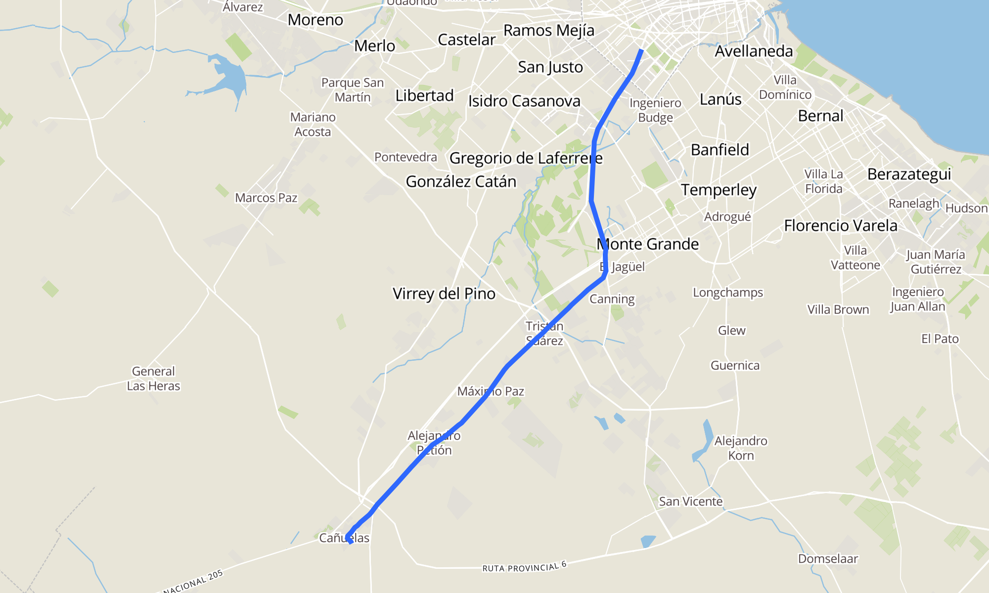 Recorrido de la línea 51: Cañuelas - Constitución (Expreso X Autopista)