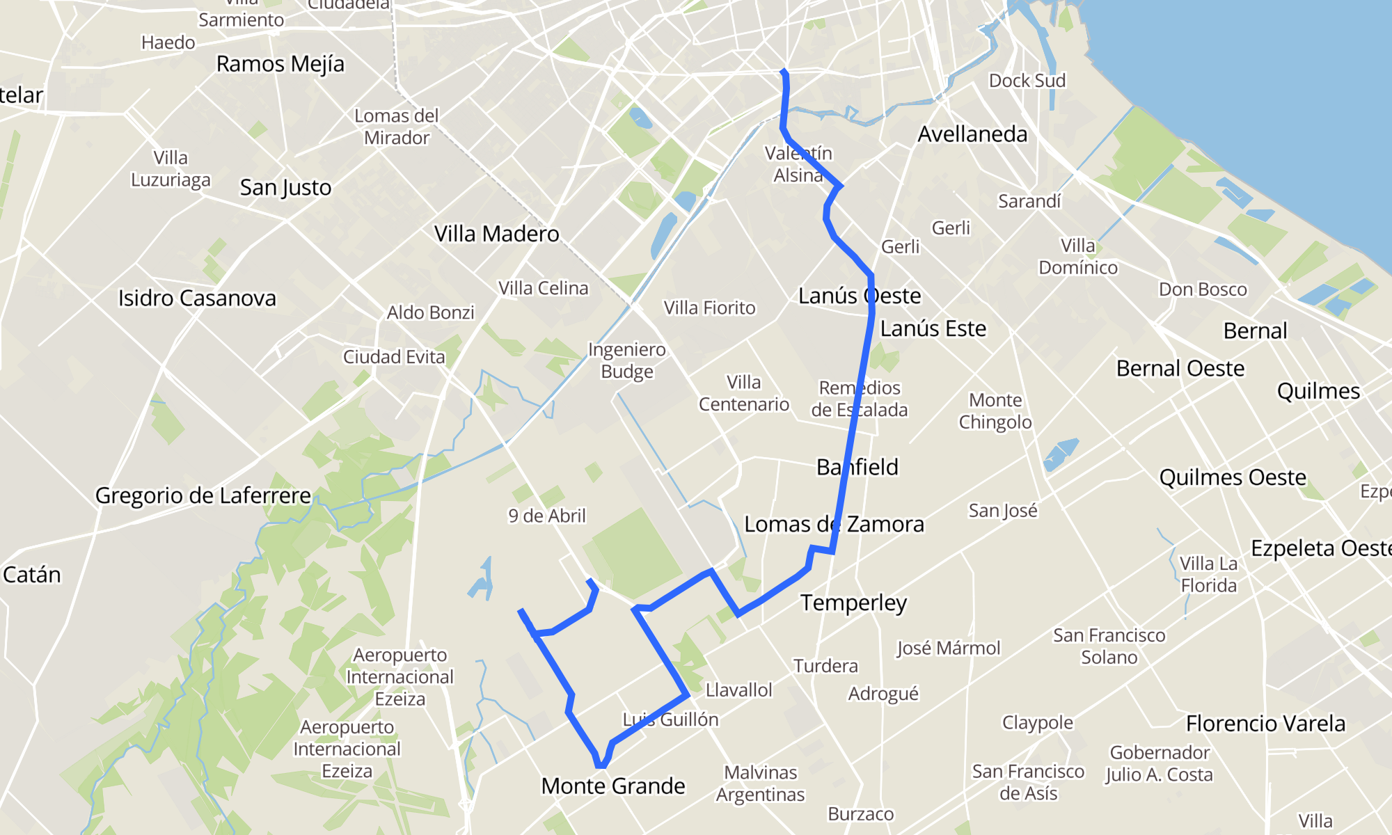 Recorrido de la línea 164: Rc - Pompeya - Est. Mte. Grande (X Oliden)
