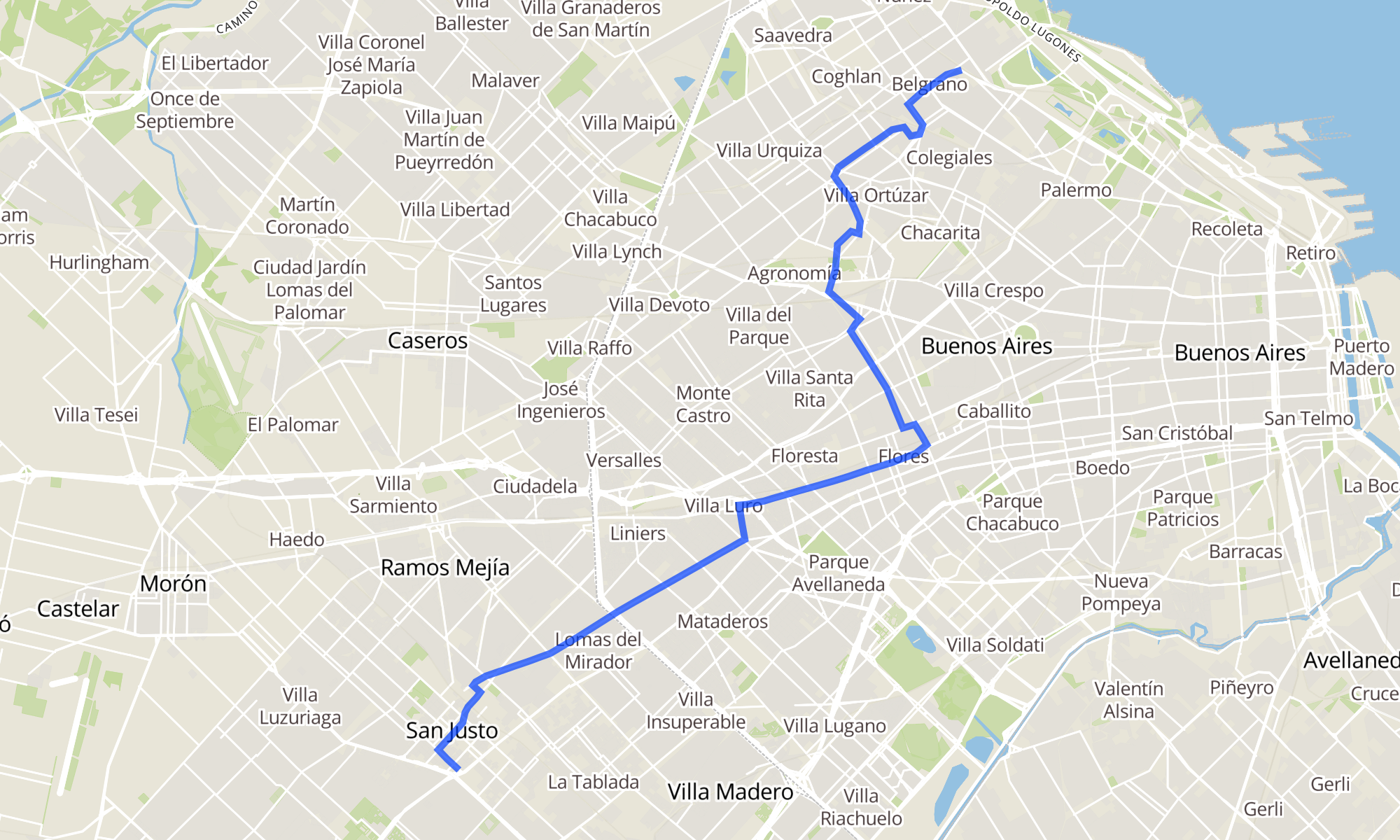 Recorrido de la línea 113: A: San Justo x Gavilán
