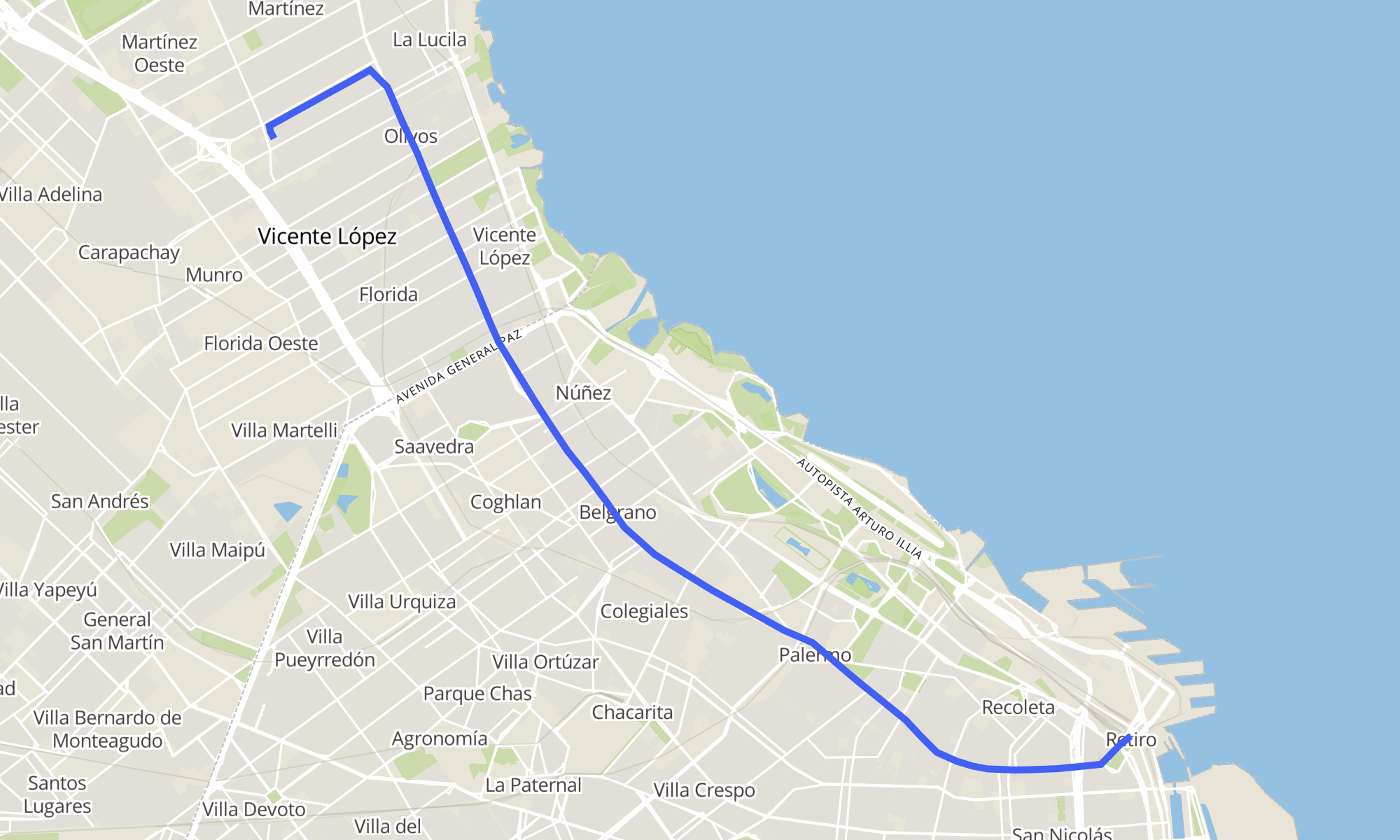 Sentido: Retiro Mitre (152) ‎→ Terminal Línea 152 (Descenso) (51 paradas)