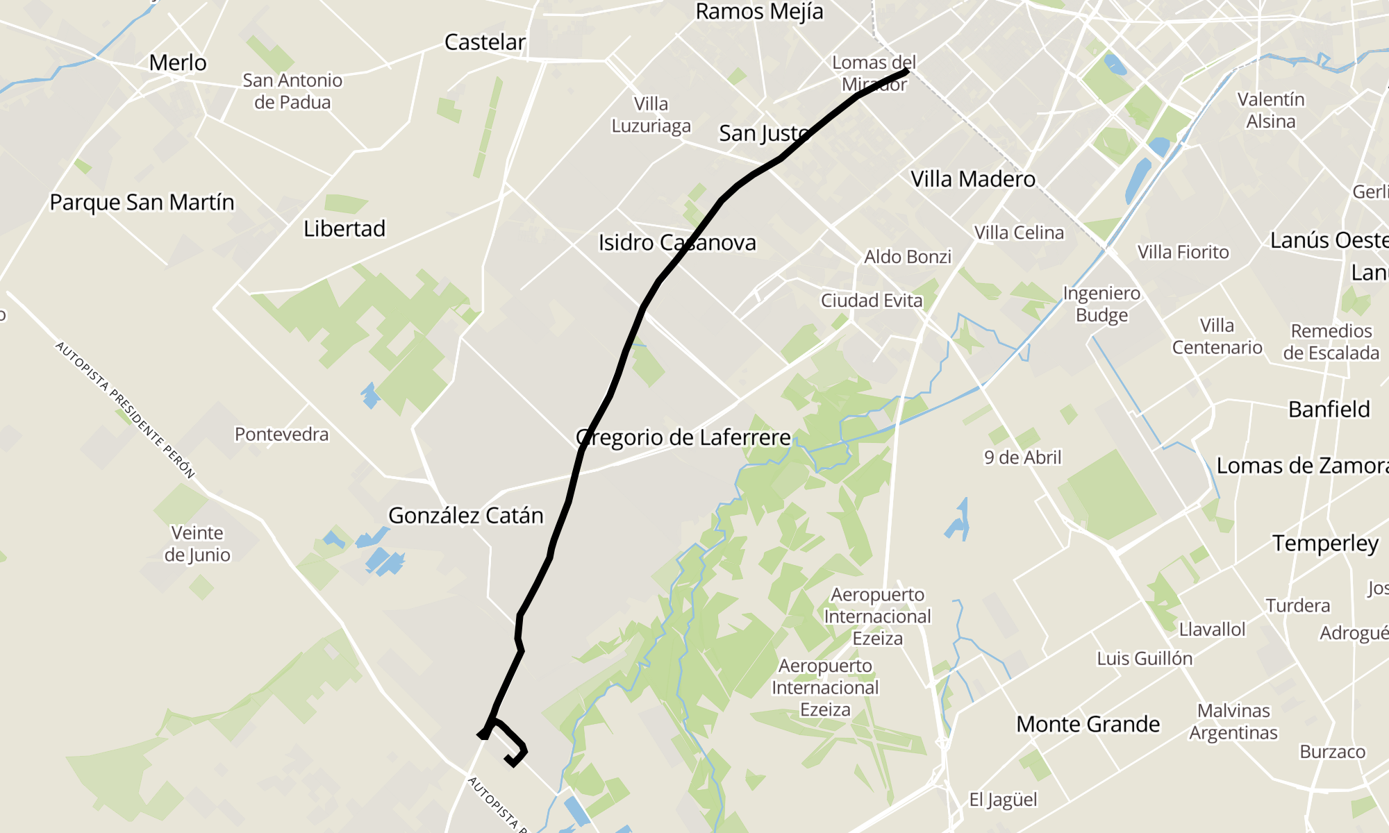 Recorrido de la línea 620: R10: R. 3 Km. 36.500 San Pedro