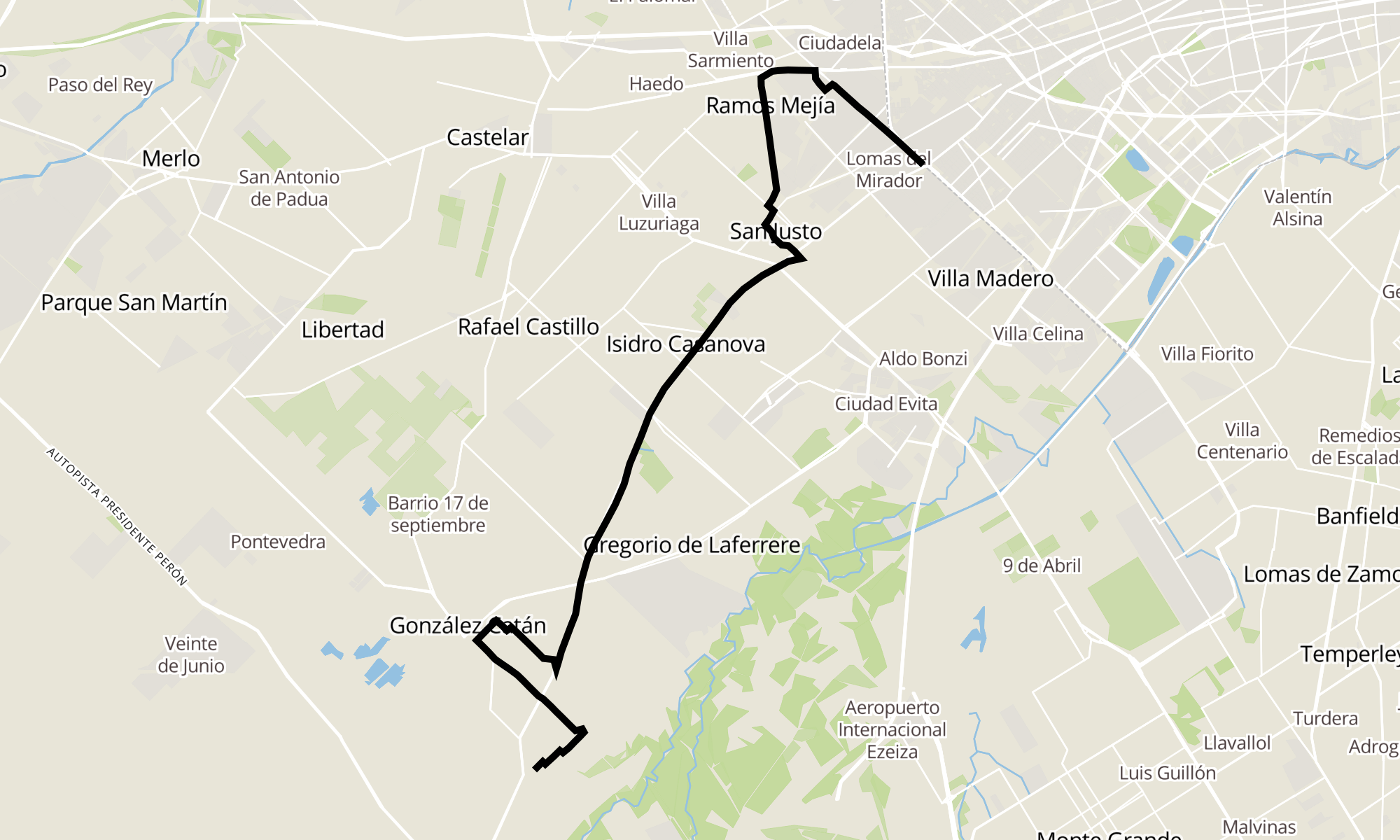 Recorrido de la línea 620: R13: J. M. De Rosas Y Gral. Paz X G. Catán X R. Mejía