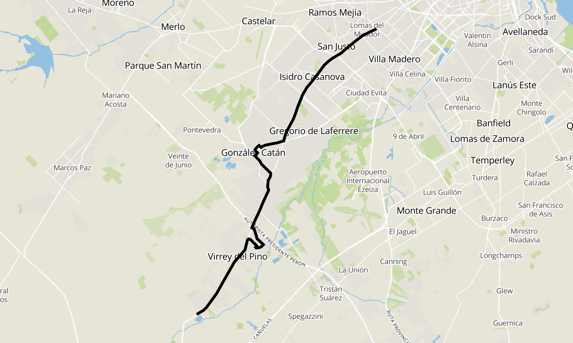 Recorrido de la línea 620: R2: R. 3 - Km. 47.700 X Catán X Esperanza