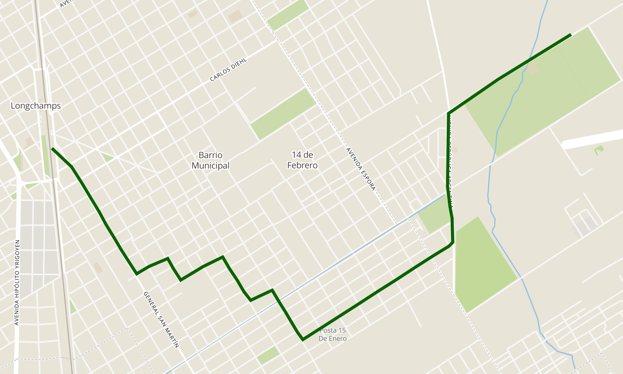 Recorrido de la línea 501: Granja Municipal → Longchamps (Los Altos)