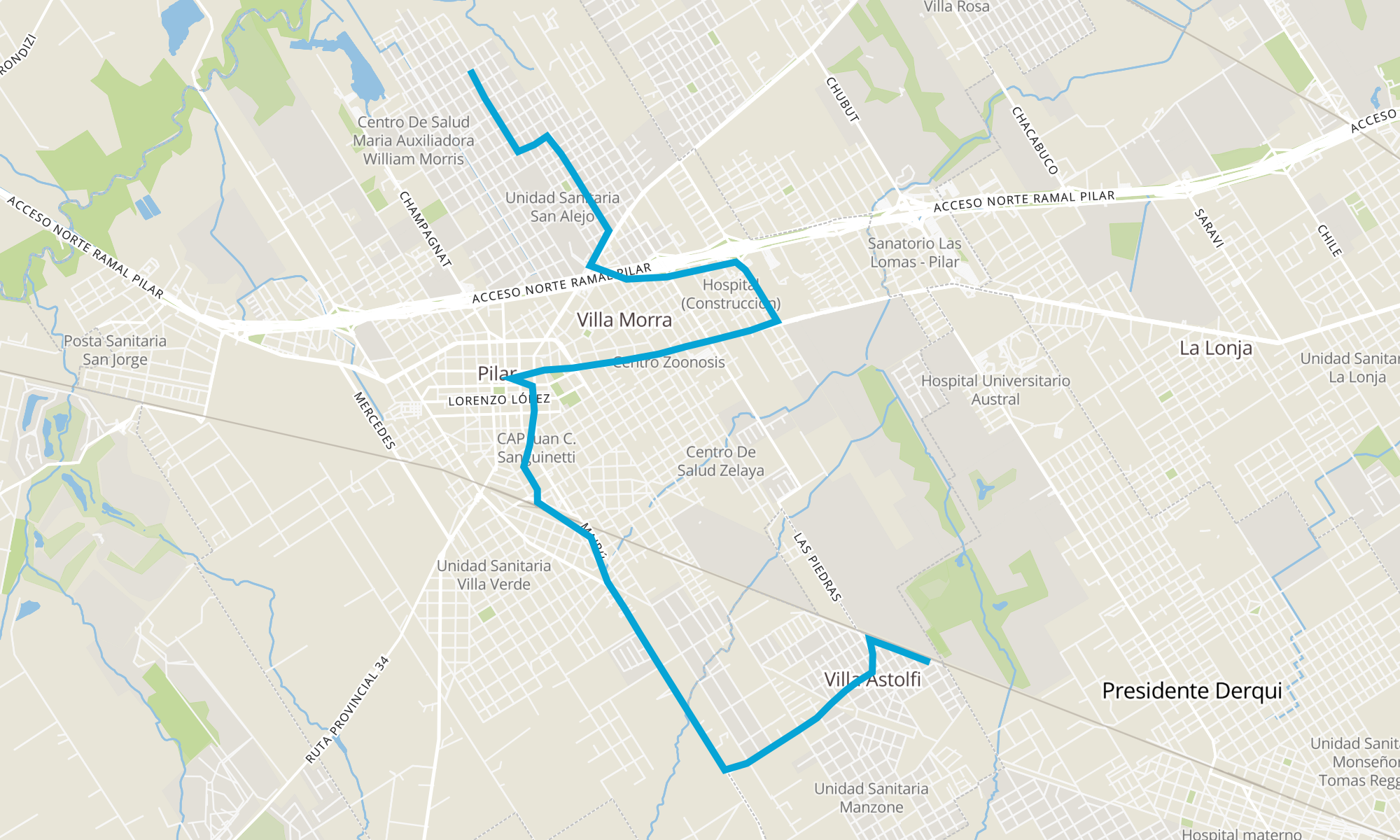 Recorrido de la línea 501: San Alejo - Villa Astolfi (X Hospital)