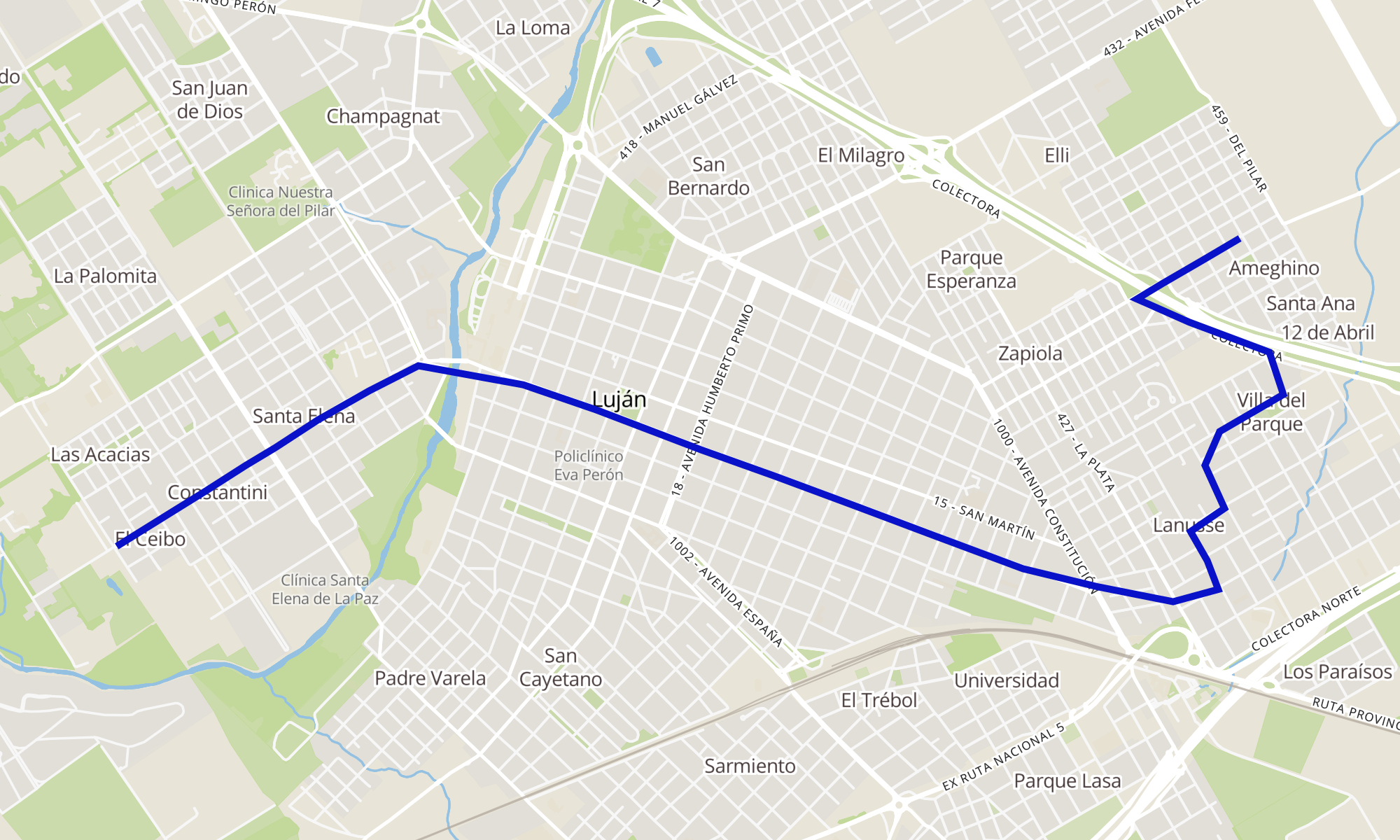 Recorrido de la línea 501 D: El Ceibo - B. Ameghino