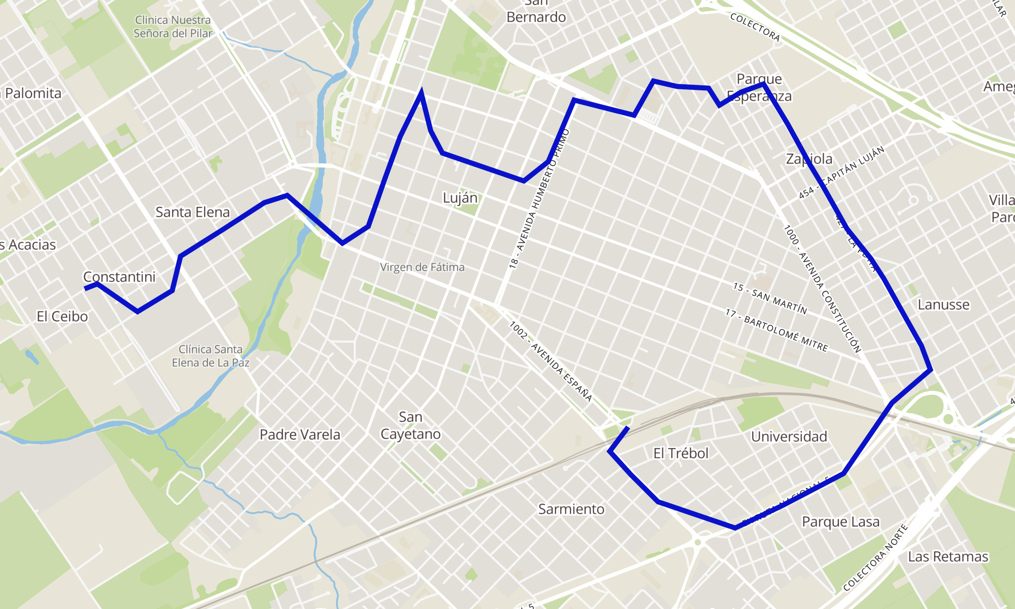 Recorrido de la línea 501 E: Est. Lujan - Cuartel V (X Mendoza)