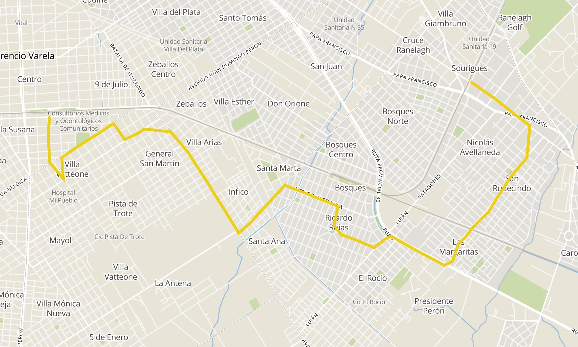 | Estación Florencio Varela (266 - 383 - 501 - 504) | Estación Sourigues |