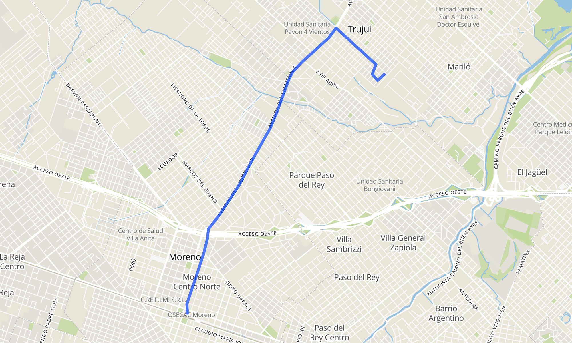 Recorrido de la línea : Mirasoles Por Ruta 23