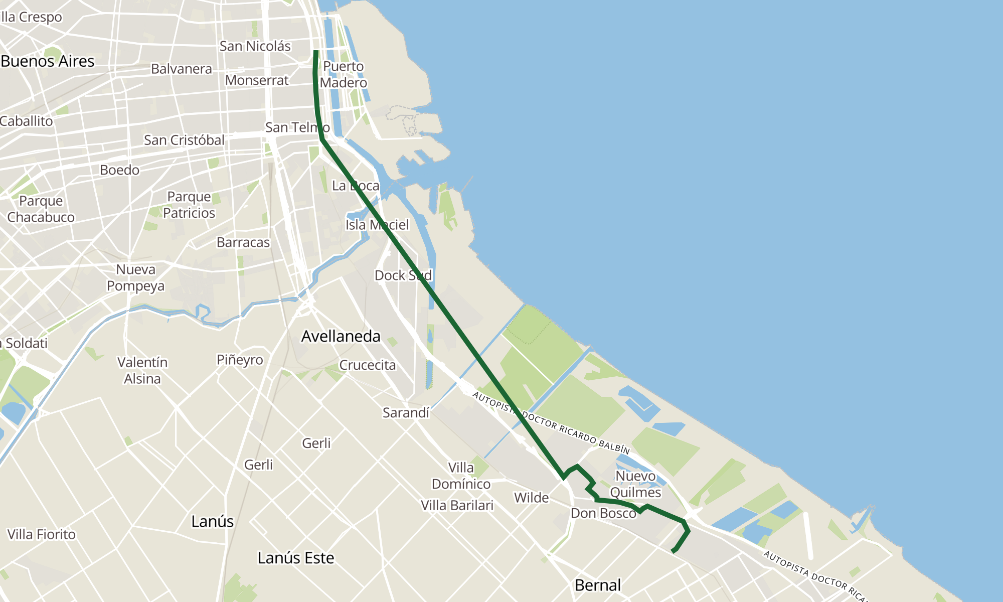 Recorrido de la línea 159 BG: 48 - Bernal - Correo Central (semirrapido)