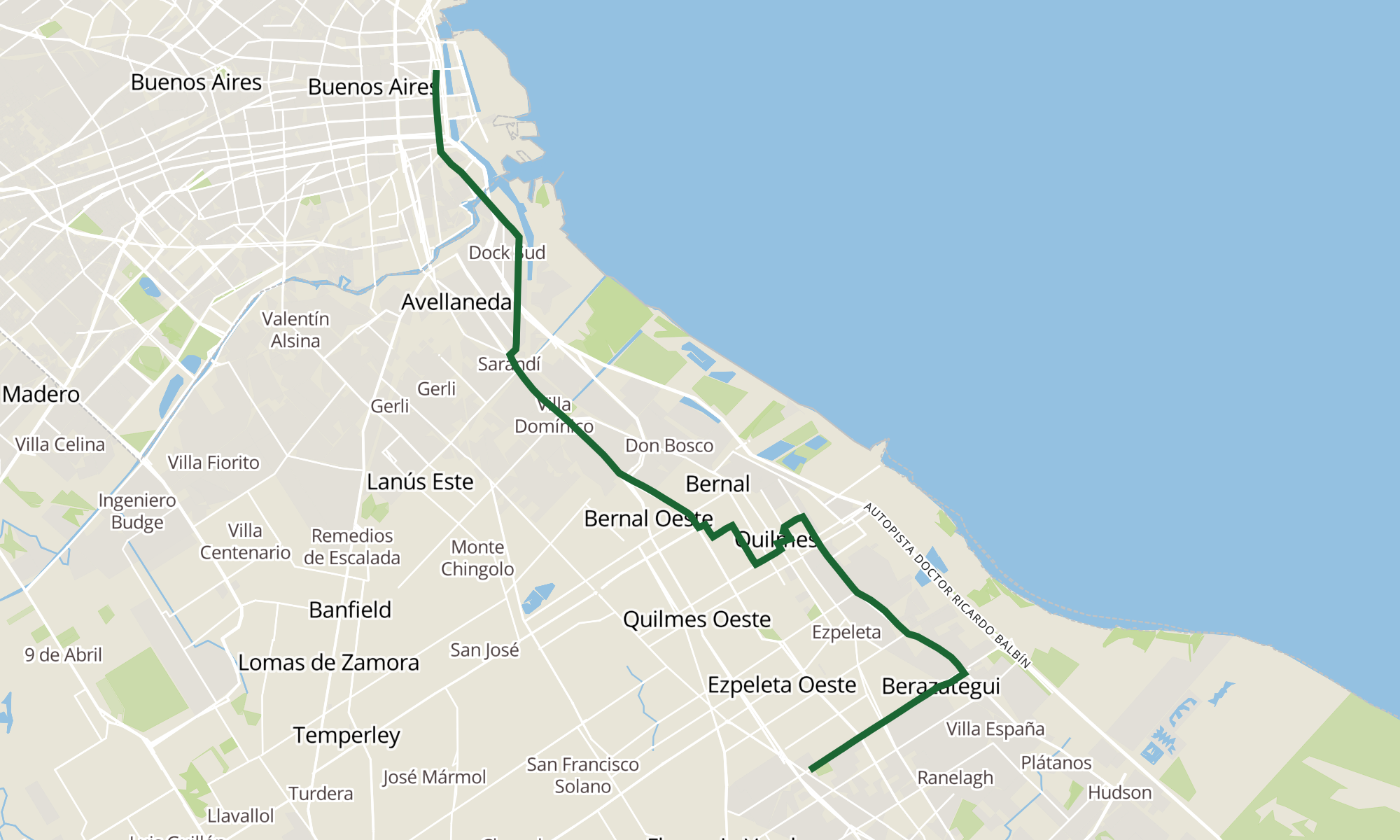 Sentido: Avenida 14 Y Calle 105 ‎→ Presidente Perón Y Avenida Alem (159) (126 paradas)