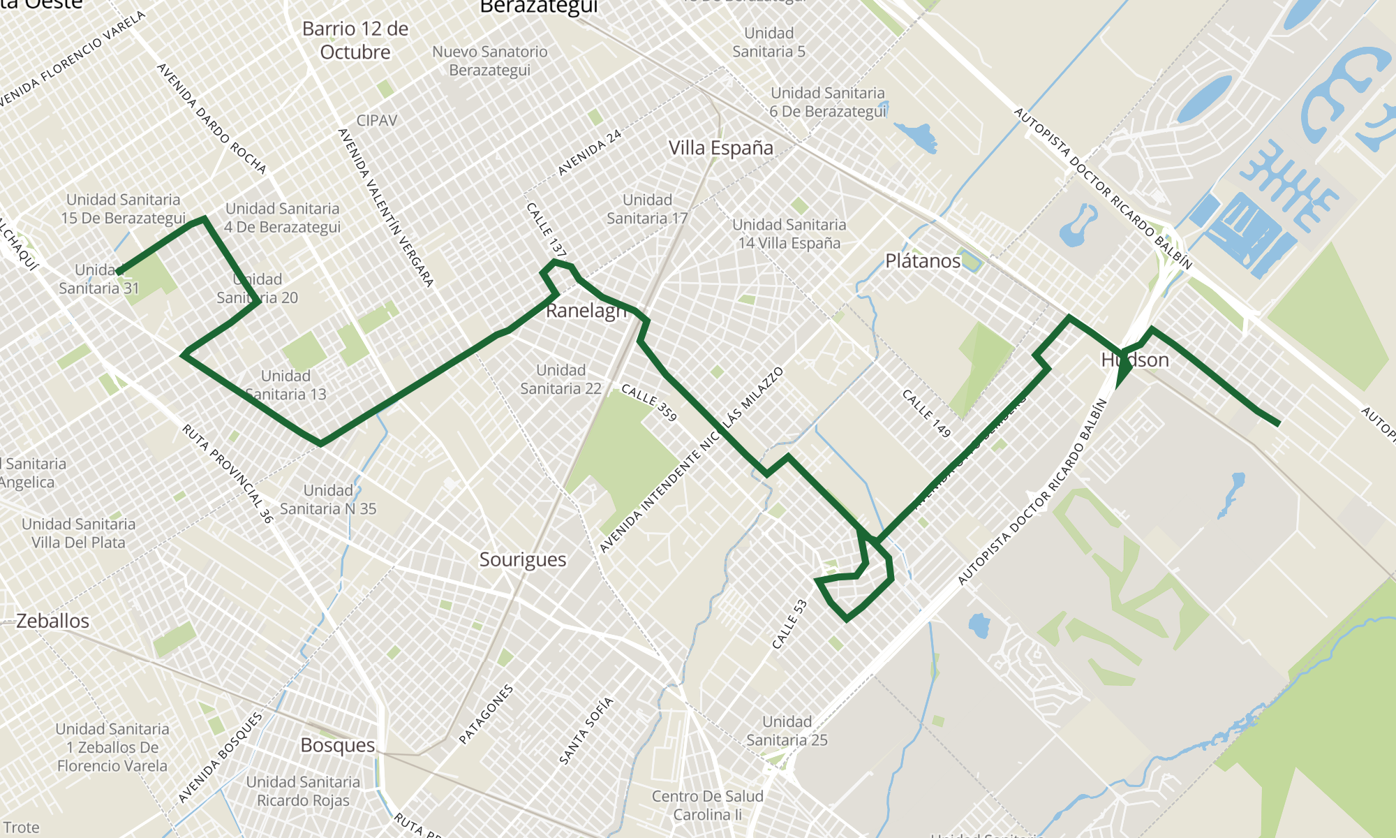 Recorrido de la línea 159 LR: 37 - Pueblo Nuevo - Garage