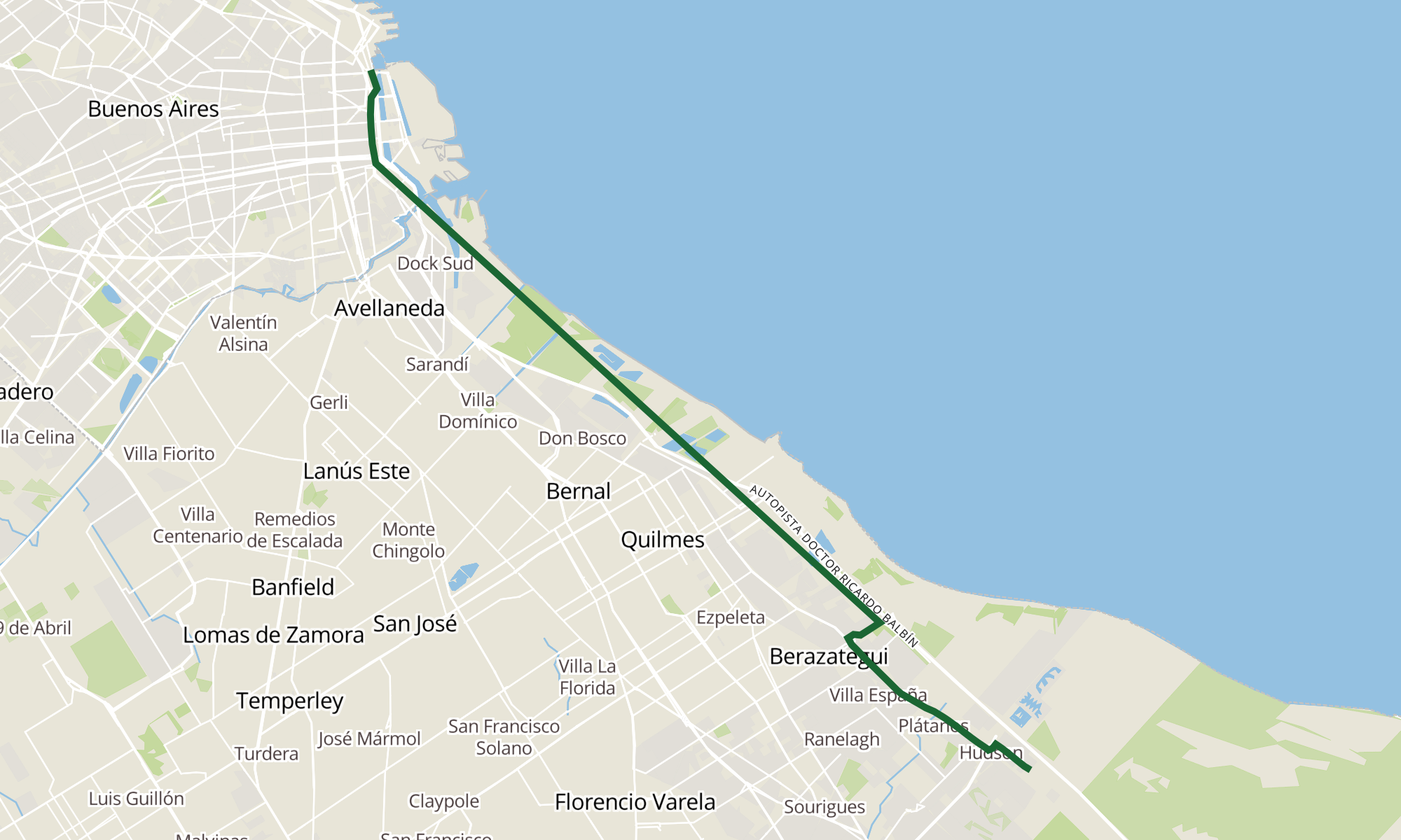 Recorrido de la línea 159 SH: 58 - Hudson - Capital (semirrapido)