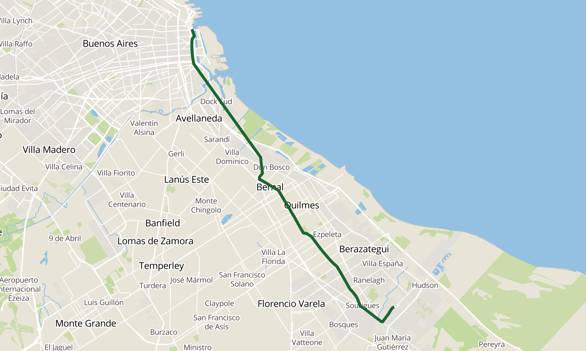 Sentido: Terminal Marítimo (159 - 197 - 603 - 619) ‎→ Terminal Madero (159 L Azul) (78 paradas)