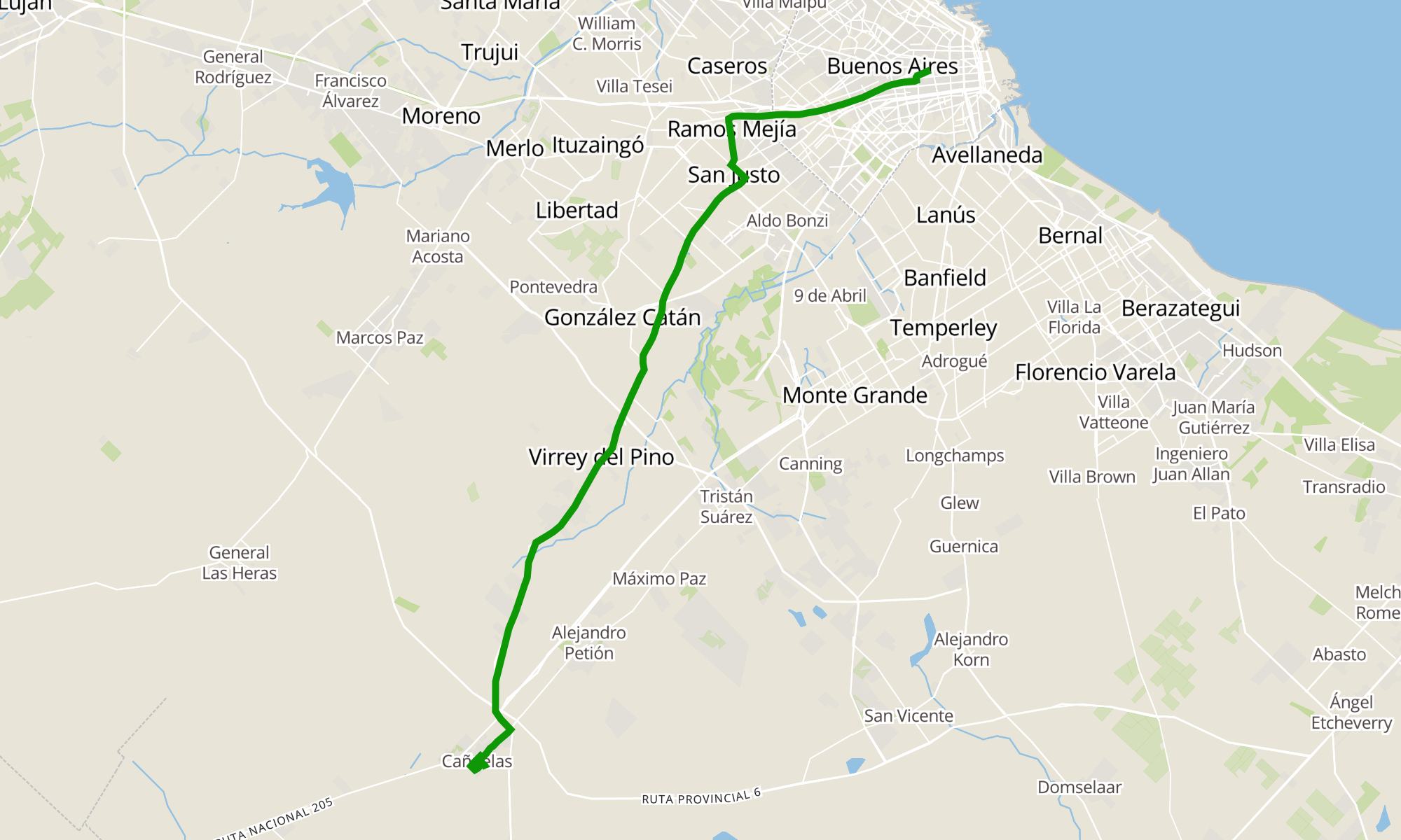 | Estación Cañuelas (88 - 218) | Plaza Once (86 - 88 Descenso) |