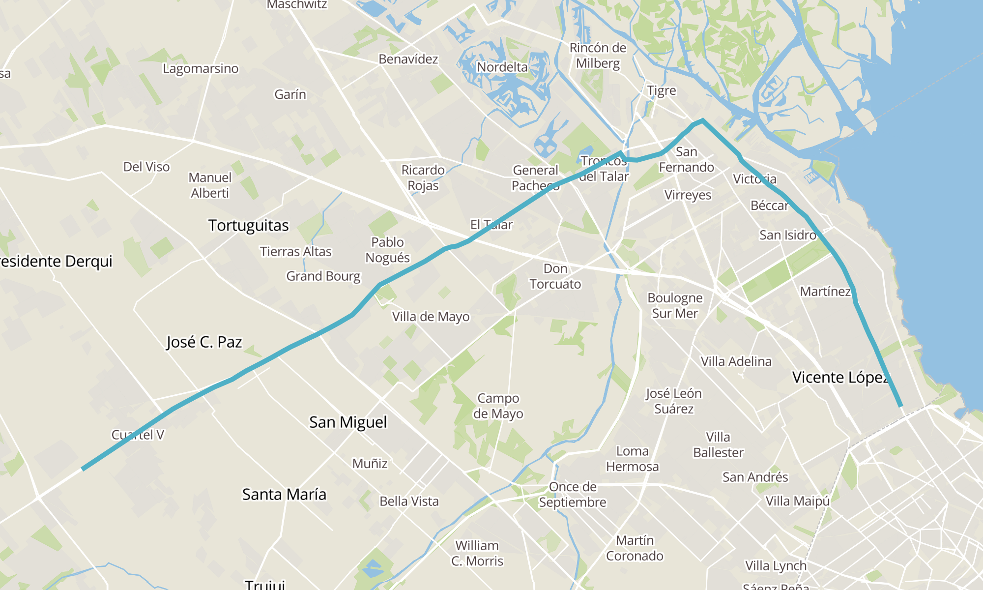 Recorrido de la línea 365R5: a Derqui x Saacedra Lamas