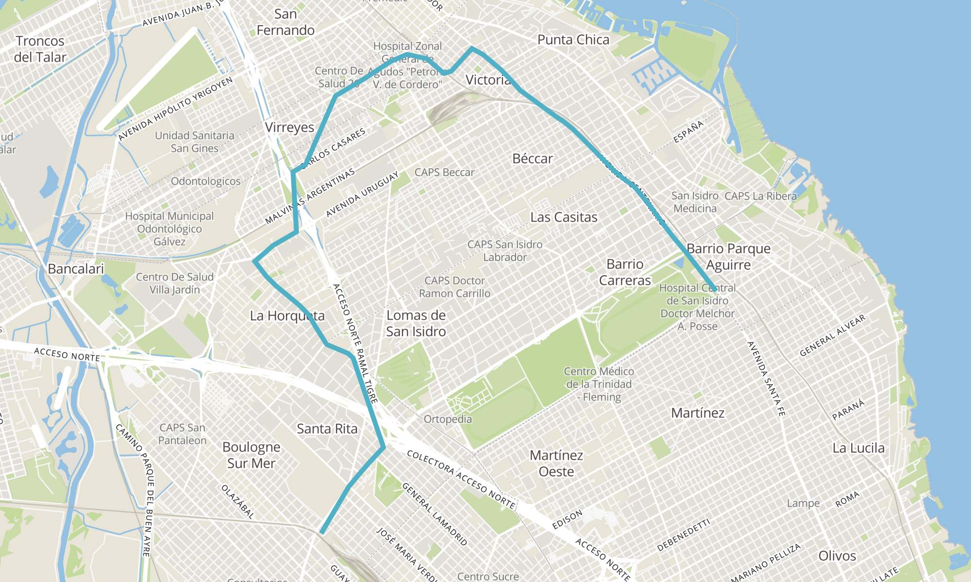 Recorrido de la línea 371M: a Est. VIRREyES / BOULOGNE x Calle 8