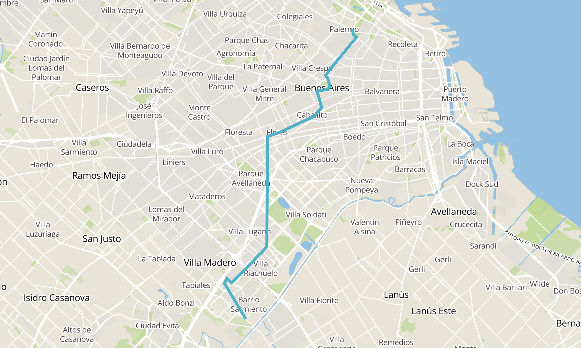 Recorrido de la línea 145C: a Pza. Italia