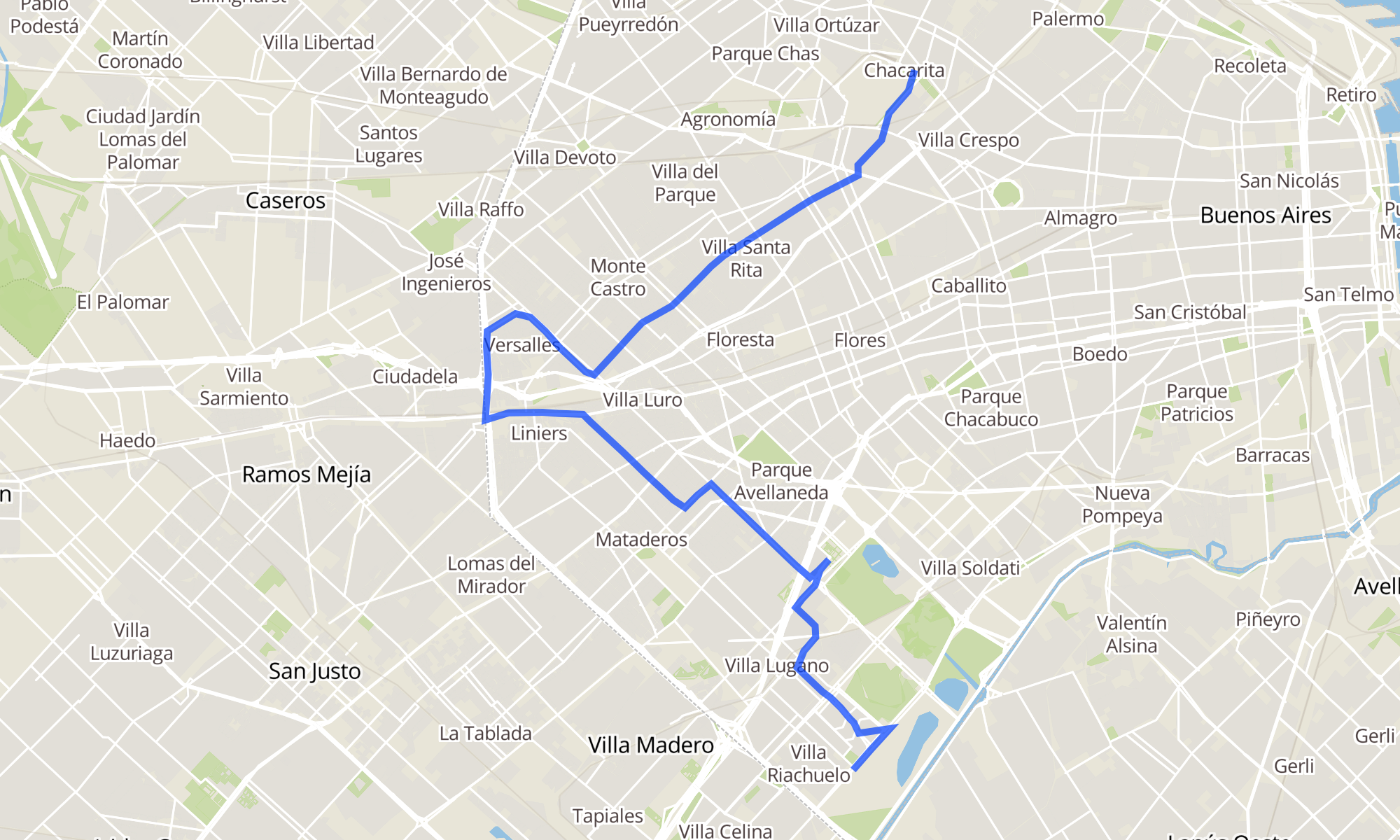 Recorrido de la línea 47B: a Chacarita x Camarones