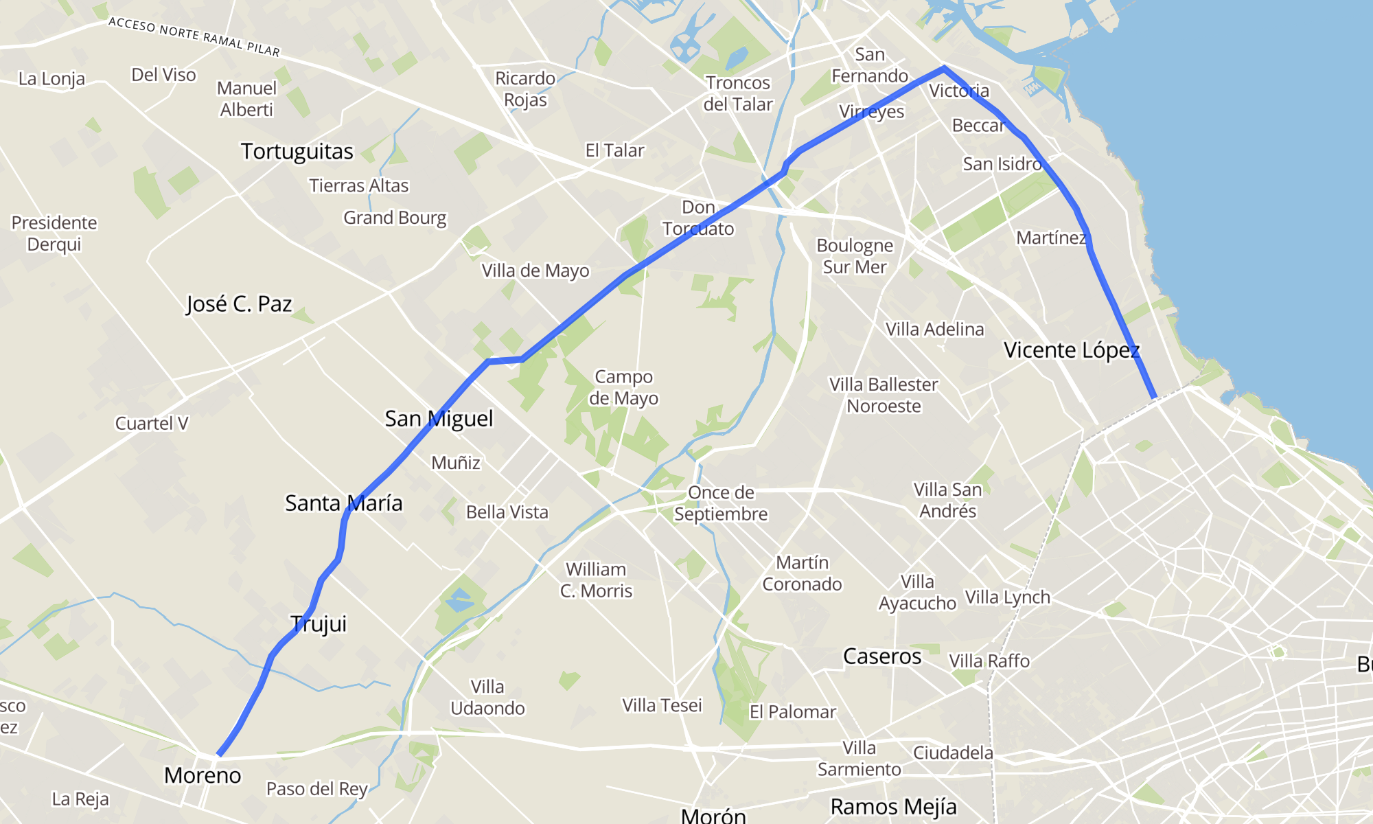 Sentido: AVENIDA DEL LIBERTADOR 1499-1549 ‎→ AVENIDA MAIPÚ 11-27 (121 paradas)
